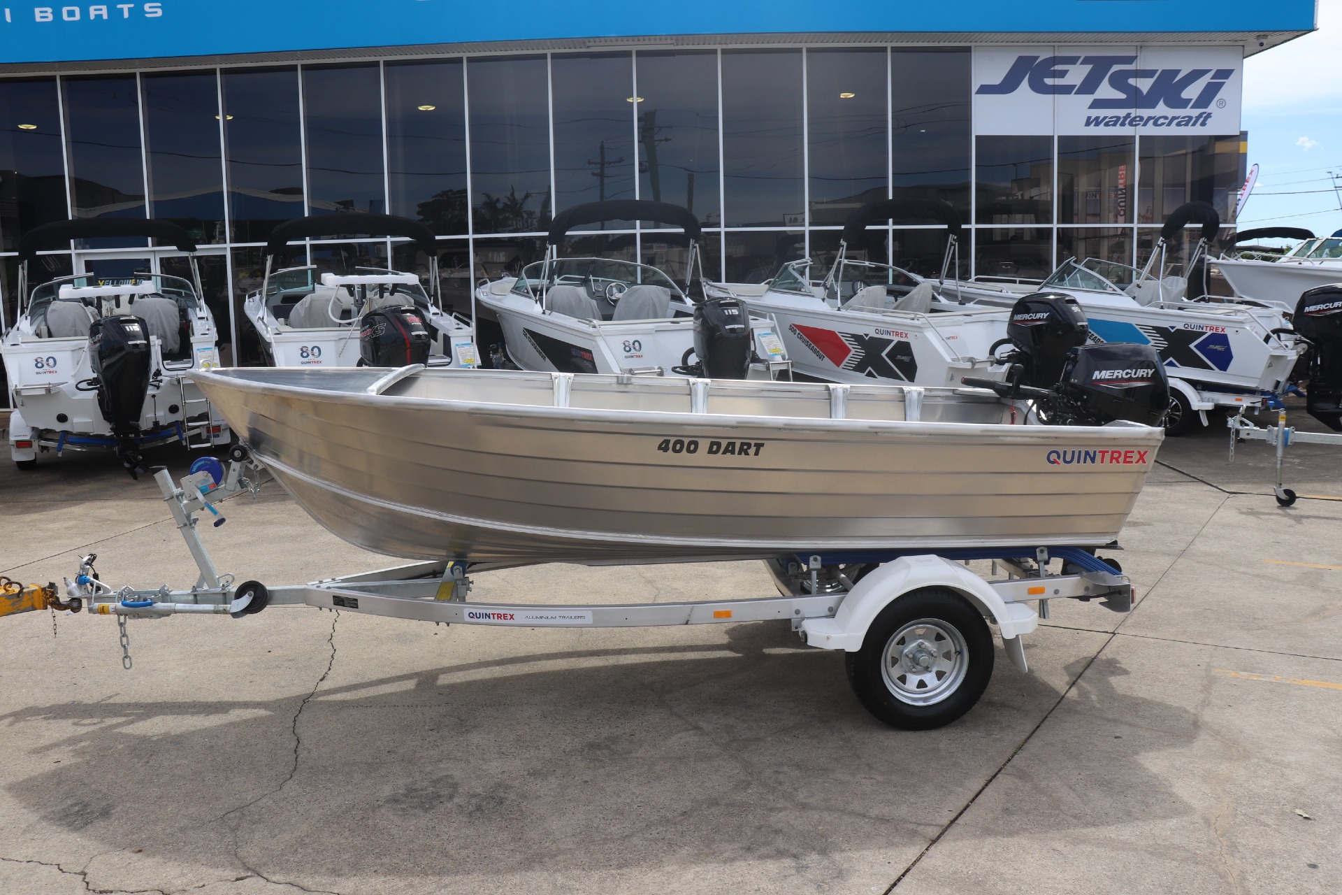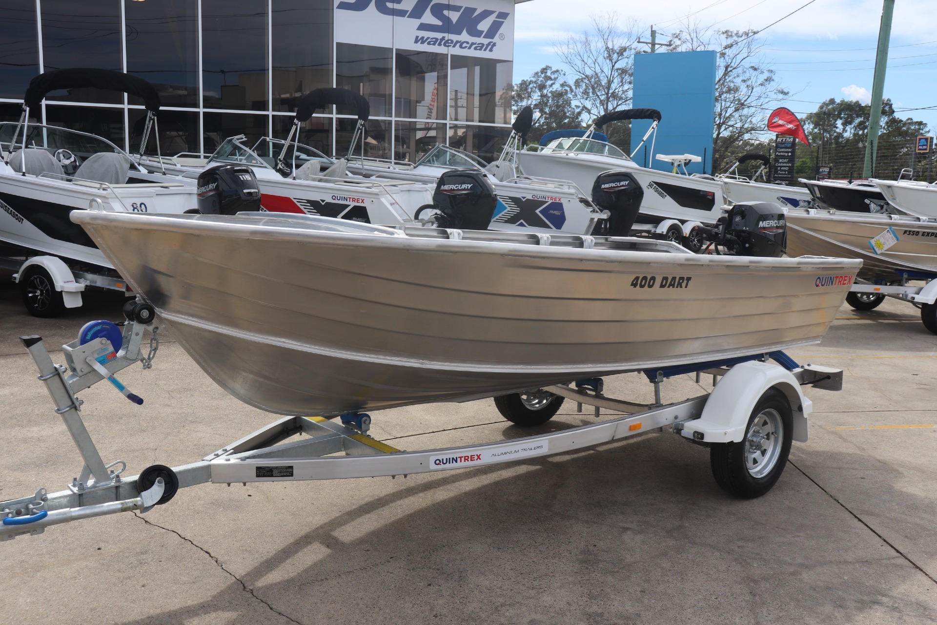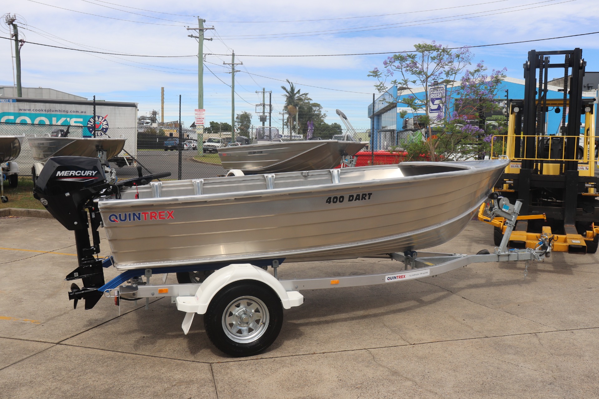QUINTREX 400 DART POWERED BY A MERCURY 20ELH 4 STROKE ON A QUINTREX ALLOY TRAILER