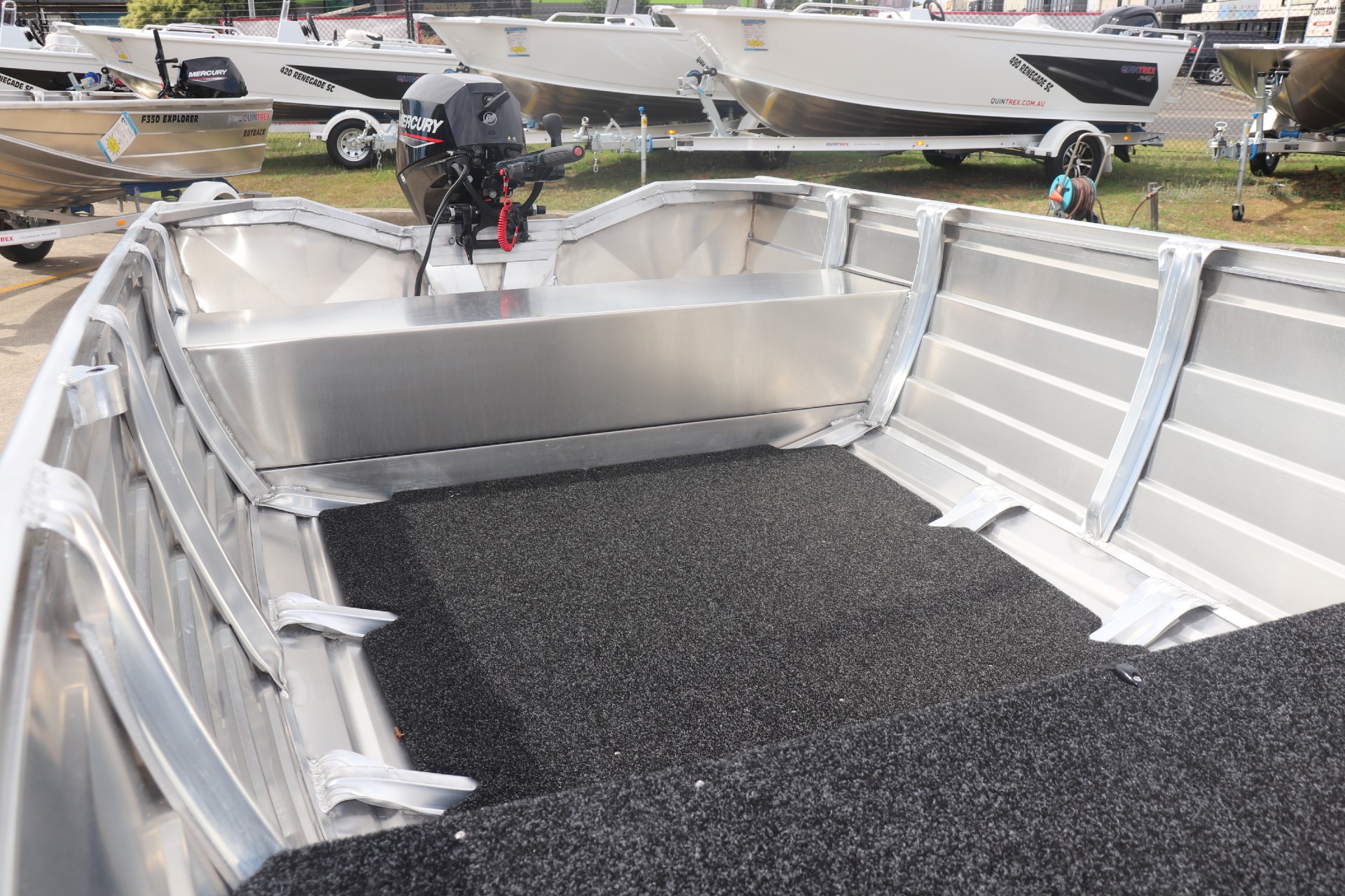 CHRISTMAS TINNIE SALE...IF PURCHASED BEFORE 15.01.26, RECIEVE A FREE GENUINE QTX BOAT STORAGE COVER PLEASE READ... TR MarineWorld is a Highly Reputable NSW Quintrex Specialist dealership. All our Quintrex Boats are CORRECTLY advertised showing Standard specifications and detailing the factory fitted options that have been installed to assure you are buying the right Boat. The photos we display in our ads are of the exact boat for sale, powered by the best suggested Horsepower engine assuring you are buying the Perfect boat from a reputable Dealership at a fair price. ALL STANDARD FEATURES: Carpet: Floor Low Carpet: Fuel Tank Rack Casting Platform Anchor Gusset Front Deck Gunnel Lip Handle Bow Handles Transom Solid Corners Transducer Bracket Seats: Bench Options ADDITIONAL FACTORY FEATURES INCLUDE: Flipper Guide Kit TR MARINE ADDITIONAL FEATURES INCLUDE: 12 Months NSW Boat & Trailer Registrations Paddle, Bucket, Horn & Torch Anchor, Rope & Chain Rear Tie Down Straps Fire Extinguisher 4 x PFD1 Life Jackets Earmuffs (Engine Flusher) *We have a well-stocked undercover Showroom and are open 6 days a week. *Need Finance? We're here to help get you on the water sooner with Mercury Marine Finance *Give us a call today to speak with one of our friendly team members 6 Year Mercury Factory Engine Warranty*