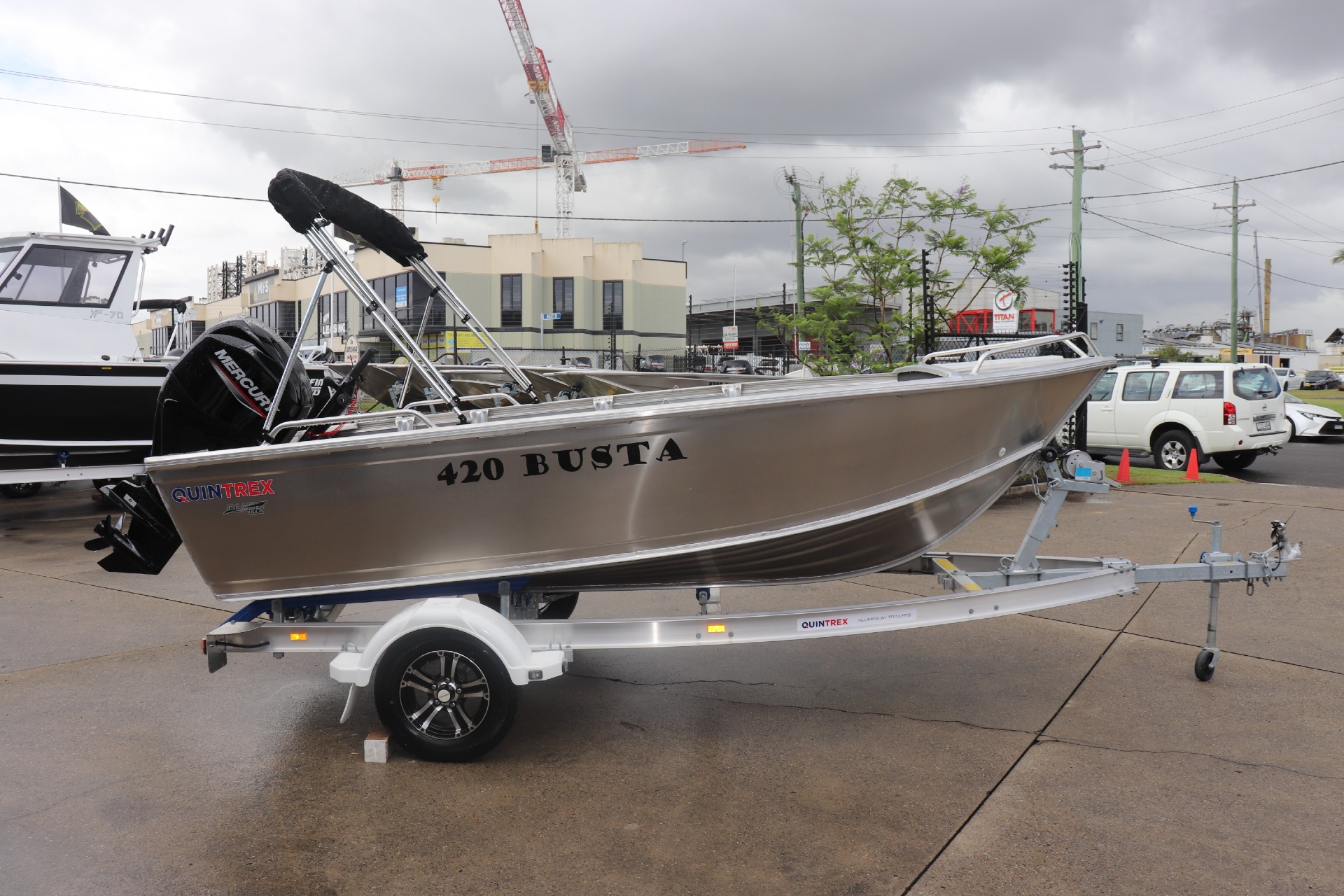 PLEASE READ... is a Highly Reputable NSW Quintrex Specialist dealership. All our Quintrex Boats are CORRECTLY advertised showing Standard specifications and detailing the factory fitted options that have been installed to assure you are buying the right Boat. The photos we display in our ads are of the exact boat for sale, powered by the best suggested Horsepower engine assuring you are buying the Perfect boat from a reputable Dealership at a fair price. FEATURES INCLUDE: Low Carpet Floor Bimini & Envelope Rod Holders (2) 12 Months NSW Boat & Trailer Registrations Paddle, Bucket, Horn & Torch Rear Tie Down Straps Fire Extinguisher 4 x PFD1 Life Jackets Earmuffs (Engine Flusher) *We have a well-stocked undercover Showroom and are open 6 days a week. *Need Finance? We're here to help get you on the water sooner with Mercury Marine Finance *Give us a call today to speak with one of our friendly team members 6 Year Mercury Factory Engine Warranty*