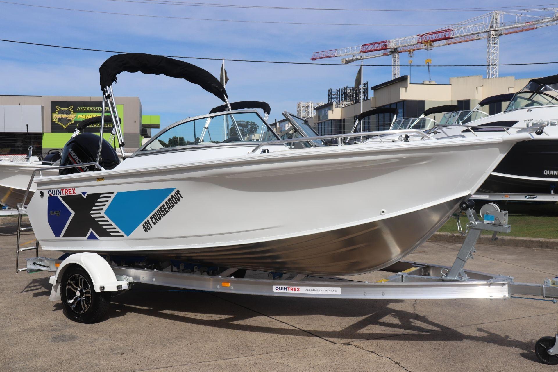 QUINTREX 481 CRUISEABOUT POWERED BY A MERCURY 75HP 4 STROKE ON A QUINTREX ALLOY TRAILER