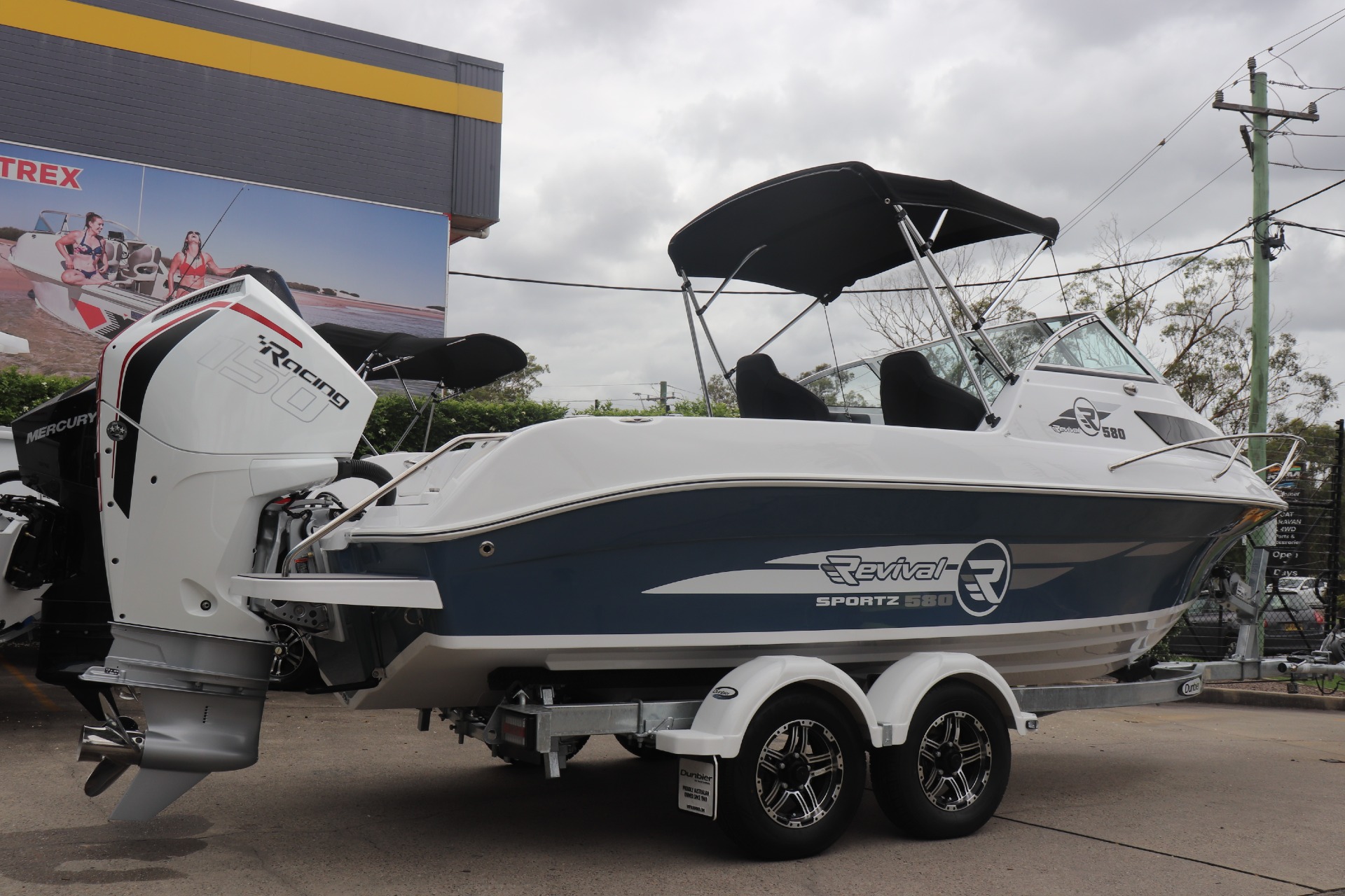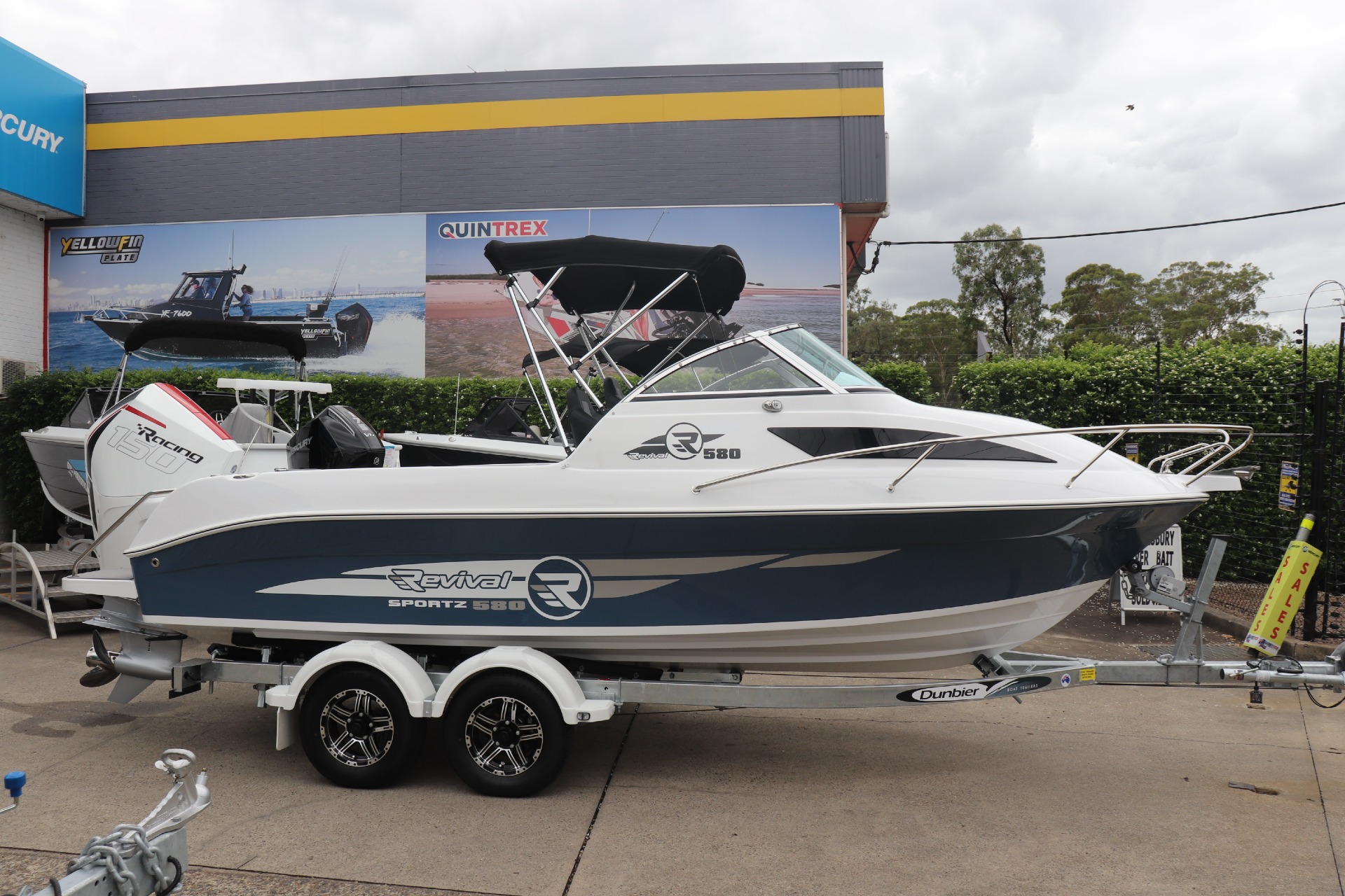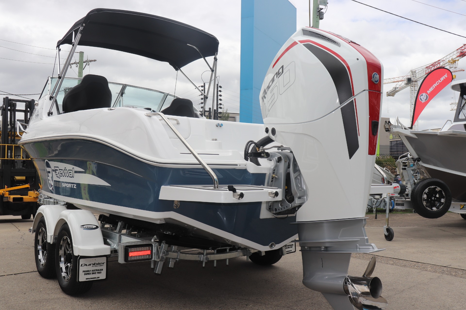 REVIVAL 580 SPORTZ POWERED BY A NEW MERCURY 150R DTS ON A DUNBIER TRAILER ONE BOAT ONLY...ENQUIRE NOW TO SECURE THIS AMAZING PACKAGE PLEASE READ... is a Highly Reputable NSW Revival Specialist dealership. All our Revival Boats are CORRECTLY advertised showing Standard specifications and detailing the factory fitted options that have been installed to assure you are buying the right Boat. The photos we display in our ads are of the exact boat for sale, Powered by the best suggested Horsepower engine assuring you are buying the Perfect boat from a reputable Dealership at a fair price. FEATUIRES INCLUDE: ALL STANDARD FEATURES + - Factory Fitted Bimini & Envelope - Front & Side Clears - Rubber Floor System Upgrade - Switch Pannel - 6 Gang - Cloth Trim in Cabin - Centre Bunk Cushion - Rear Platform & S/S Ladder - SS Cast Rod Holders (2) - Rod Hanger Side of Hull - Pedestal Seat Flip Up (Pair) - Seat Upgrade GAS Assist (Starboard) - Rear lounge w/ 2 x Storage Boxes - S/S Space Frame (Port) - Deluxe Steering Wheel - Mercury Vessel View 403' Engine Display Screen - Lowrance Hook Reveal 9" GPS Combo TR MARINE ADDITIONAL FEATURES INCLUDE: - 12 Months NSW Boat & Trailer Registrations - Paddle, Bucket, Horn & Torch - Rear Tie Down Straps - Fire Extinguisher - Anchor, Rope & Chain - Earmuffs (Engine Flusher) *Revival X-RIDER 10 Year Hull Warranty *We have a well-stocked undercover Showroom and are open 6 days a week. *Need Finance? We're here to help get you on the water sooner with Mercury Marine Finance *Give us a call today to speak with one of our friendly team members 6 Year Mercury Factory Engine Warranty*