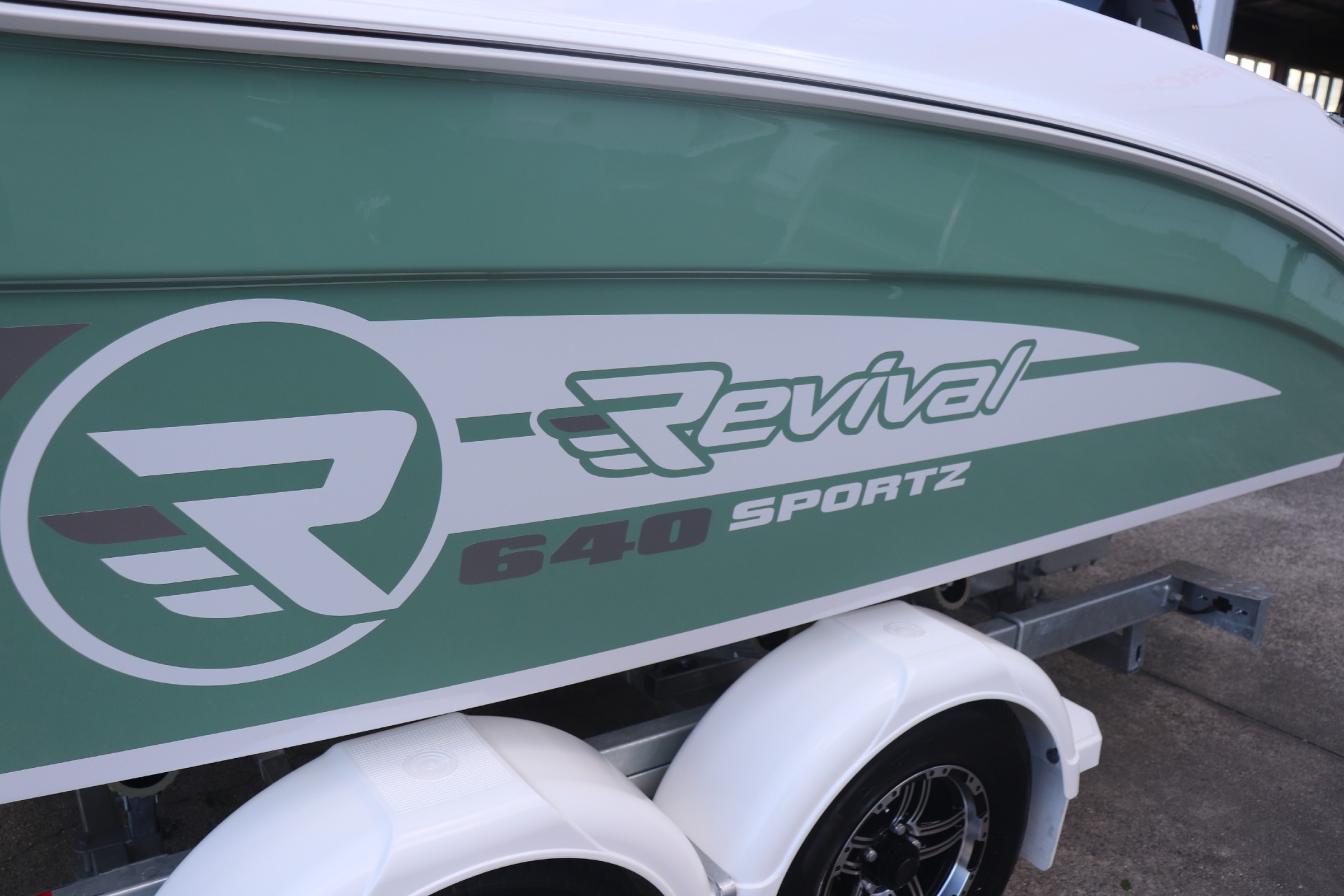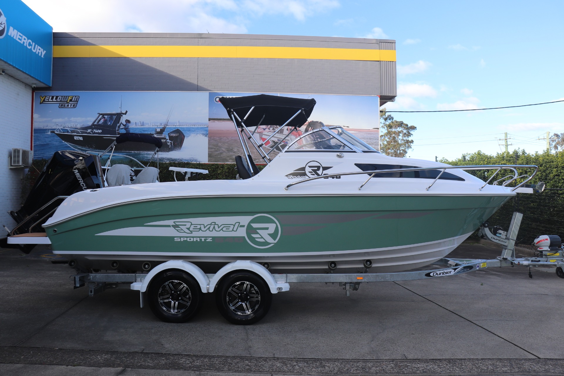 REVIVAL 640 SPORTZ POWERED BY A MERCURY 175HP DTS 4 STROKE ON A DUNBIER ELECTRIC BRAKED TRAILER