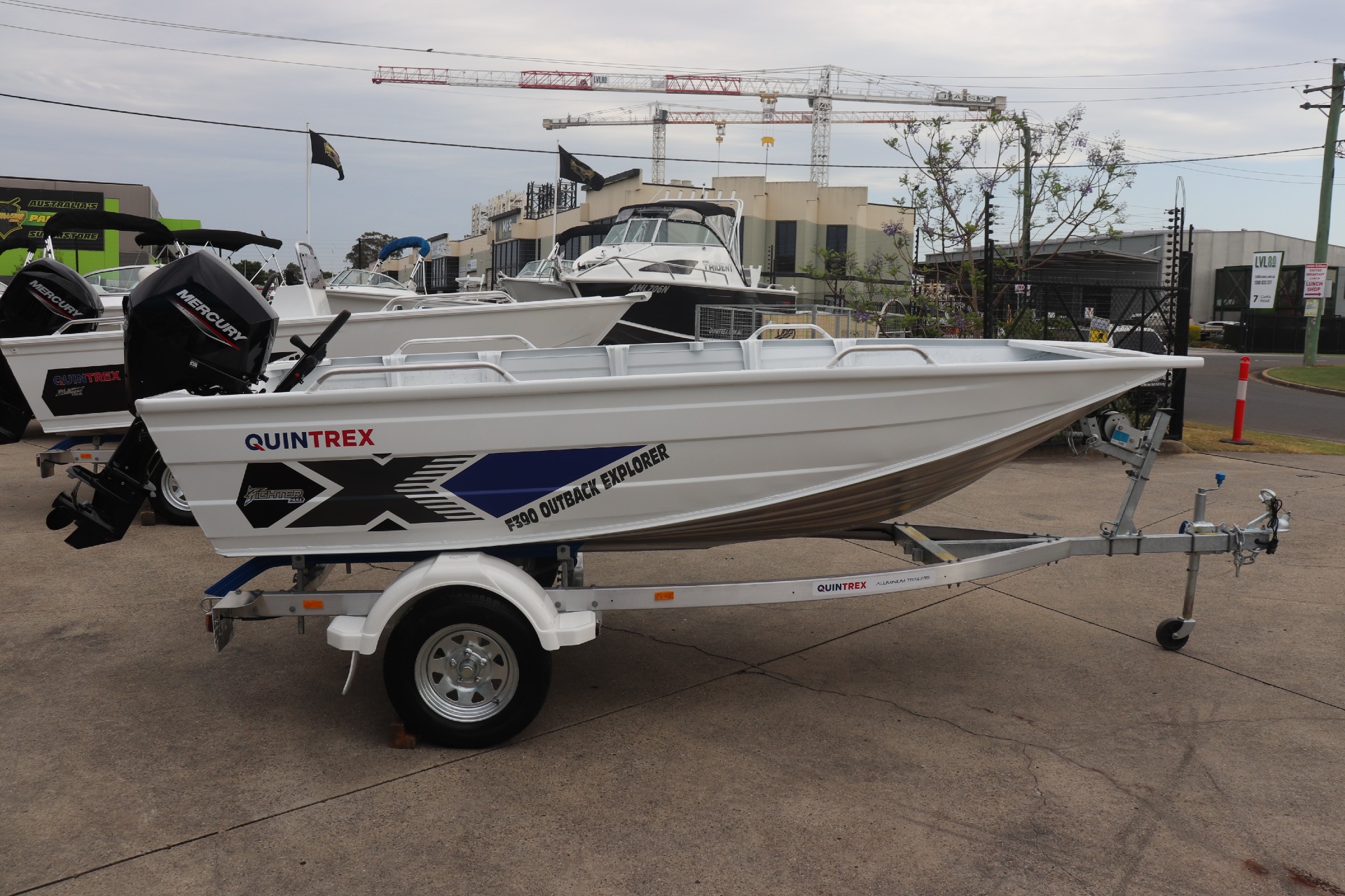 QUINTREX F390 OUTBACK EXPLORER POWERED BY A MERCURY 25ELHPT 4 STROKE ON A QUINTREX ALLOY TRAILER