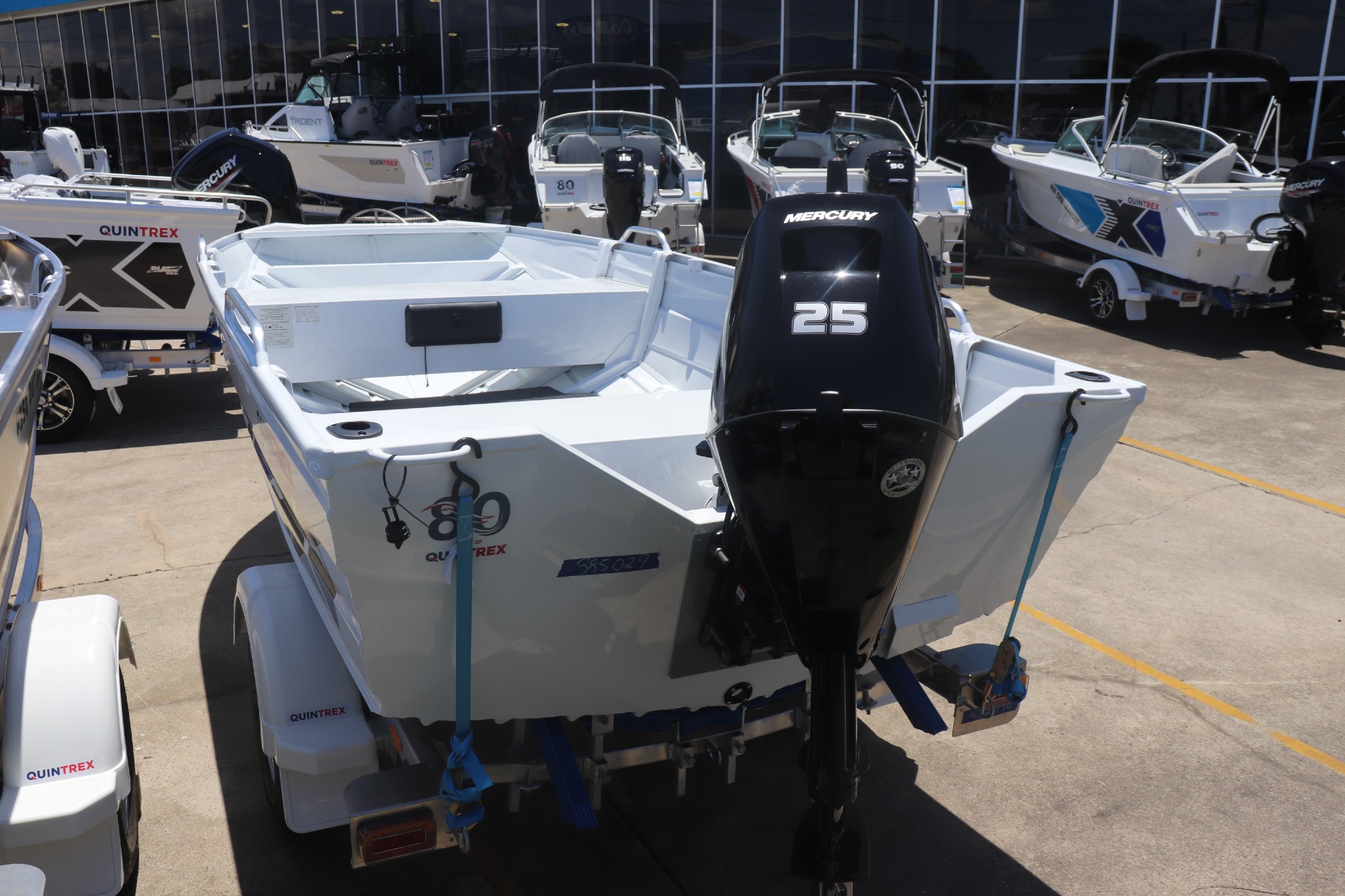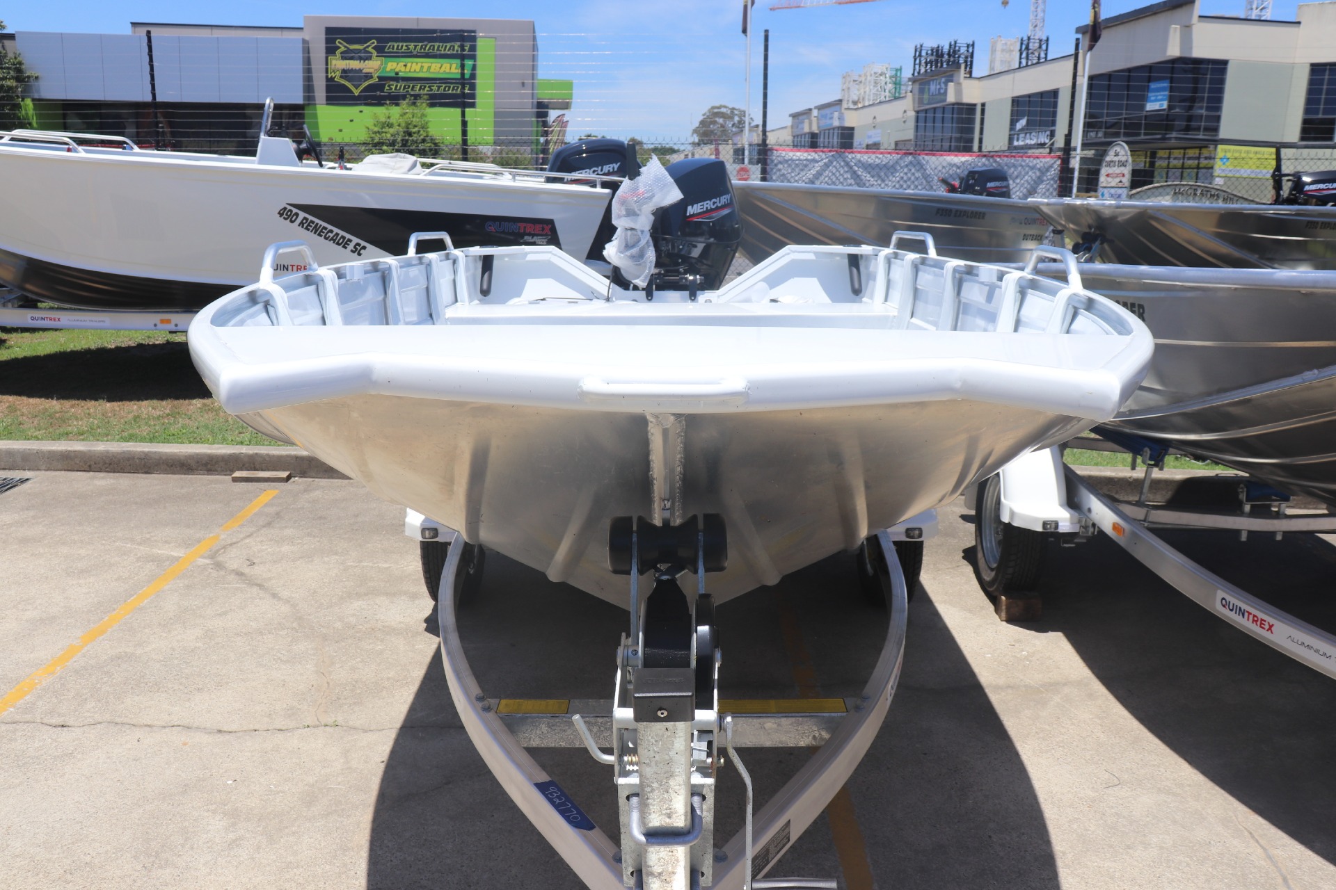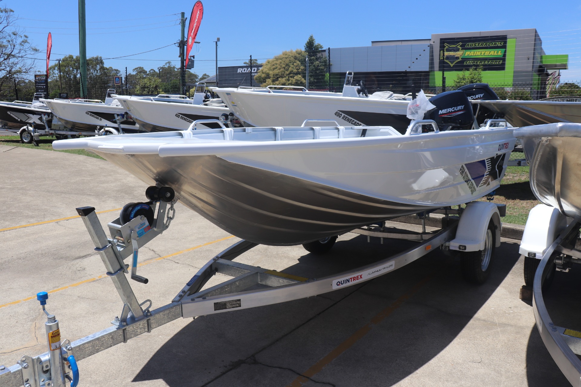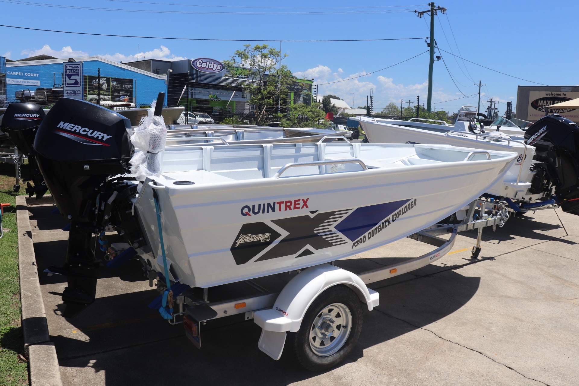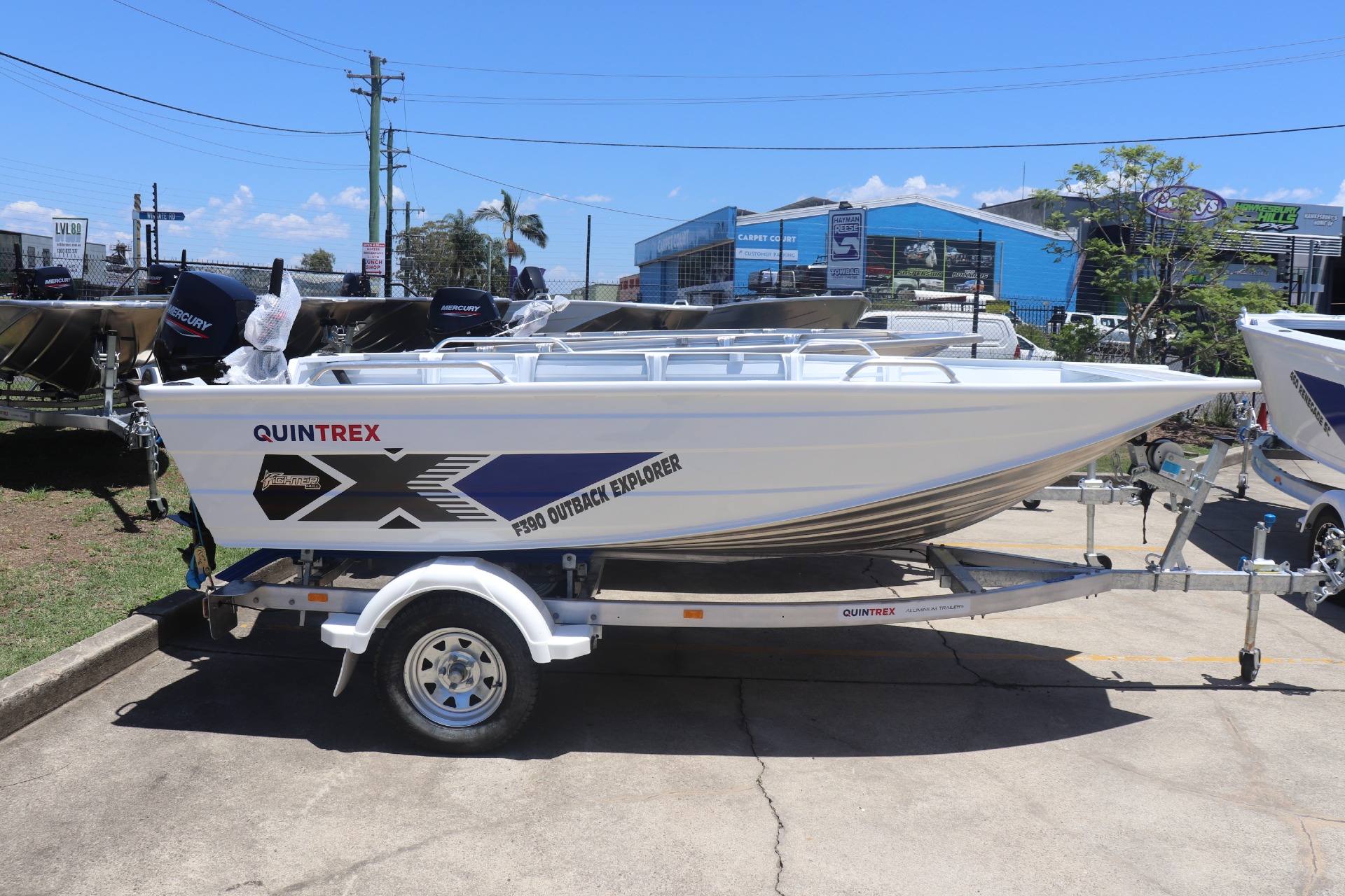 QUINTREX F390 OUTBACK EXPLORER POWERED BY A MERCURY 25ELHPT 4 STROKE ON A QUINTREX ALLOY TRAILER CHRISTMAS TINNIE SALE...IF PURCHASED BEFORE 15.01.26, RECIEVE A FREE GENUINE QTX BOAT STORAGE COVER PLEASE READ... TR MarineWorld is a Highly Reputable NSW Quintrex Specialist dealership. All our Quintrex Boats are CORRECTLY advertised showing Standard specifications and detailing the factory fitted options that have been installed to assure you are buying the right Boat. The photos we display in our ads are of the exact boat for sale, powered by the best suggested Horsepower engine assuring you are buying the Perfect boat from a reputable Dealership at a fair price. FEATURES INCLUDE: - ALL STANDARD FEATURES Glove Box Anchor Gusset Flat Foredeck Handle Bow Handles Transom Rowlock Blocks Rails: Bow rails Rails: Side Seats: Bench ADDITIONAL FEATUES INCLUDE: - Painted Hull (White) - Low Center Floor - Fuel Tank Rack - Transducer Bracket - Flipper Guide Kit - 2 Rod Holders - 12 Months NSW Boat & Trailer Registrations - Paddle, Bucket, Horn & Torch - Rear Tie Down Straps - Fire Extinguisher - Anchor, Rope & Chain - 4 x PFD1 Life Jackets - Earmuffs (Engine Flusher) *We have a well-stocked undercover Showroom and are open 6 days a week. *Need Finance? We're here to help get you on the water sooner with Mercury Marine Finance *Give us a call today to speak with one of our friendly team members 6 Year Mercury Factory Engine Warranty*