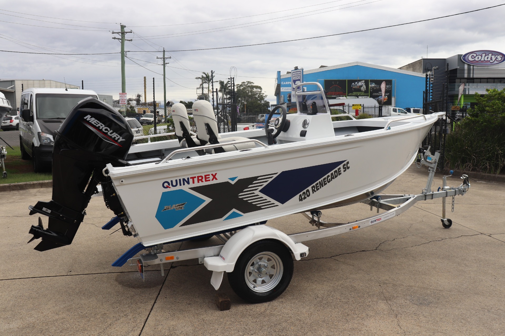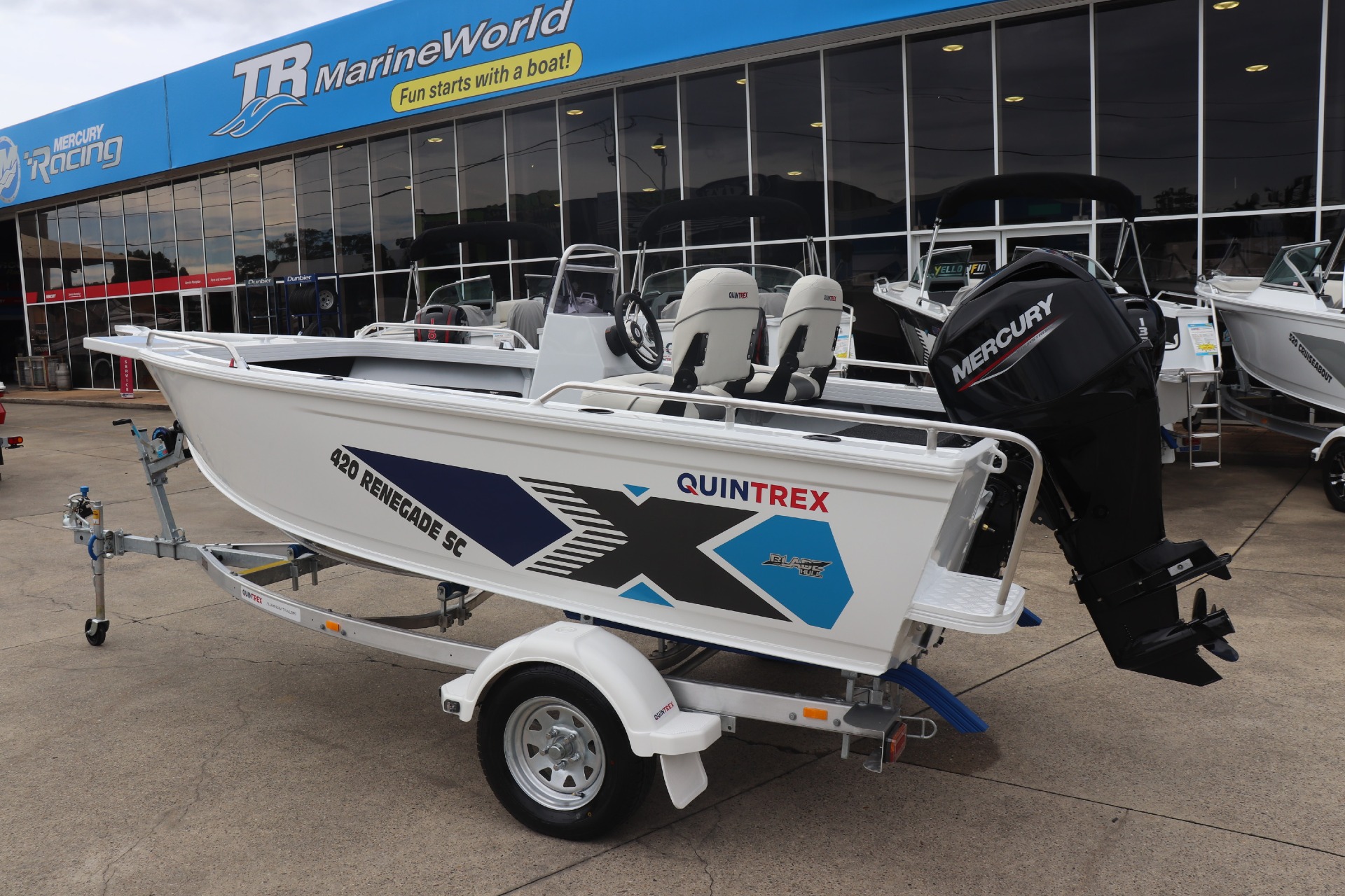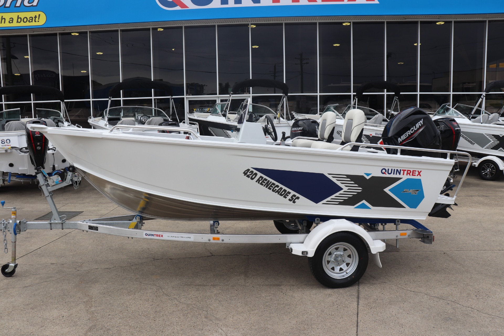 QUINTREX 420 RENEGADE SC POWERED BY A MERCURY 50HP 4 STROKE ON A QUINTREX ALLOY TRAILER