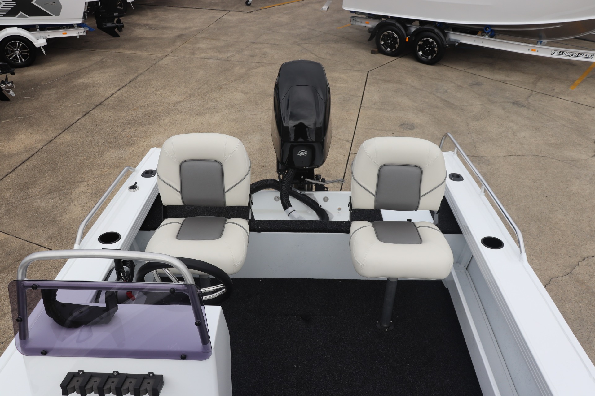 FEATURES INCLUDE: ALL STANDARD FEATURES: Casting Platform Helm: Side Console & Mechanical Steering Anchorwell Battery Box Bow Roller Drink Holder Cups Rod Holders (4) Transom Step & Rail Alloy Cleat on Front Deck Blade Hull Centre Console Deck Rear Casting Platform & LBT Side Decks Extruded Side Pockets Smooth Topsides Transducer Brackets x 2 Side Rails Seat Positions (3) Seats: Pedestal GT54UHD - Transom Mount Transducer ADDITIONAL FACTORY FEATURES INCLUDE: Console 5 Rod Storage Flipper Guide Kit Garmin ECHOMap UHD2 75sv Mercury SC1000 Digital Tacho Painted Hull - White Seat Spiggot in Casting Platform Thruster Bow Mount Plate Upgraded Steering Wheel Welded Top Deck & Gunnels TR MARINE ADDITONAL OPTIONS INCLUDE: 12 Months NSW Boat & Trailer Registrations Paddle, Bucket, Horn & Torch Rear Tie Down Straps Fire Extinguisher Anchor, Rope & Chain Earmuffs (Engine Flusher) 4 x PFD1 Life Jackets *We have a well-stocked undercover Showroom and are open 6 days a week. *Need Finance? We're here to help get you on the water sooner with Mercury Marine Finance *Give us a call today to speak with one of our friendly team members 6 Year Mercury Factory Engine Warranty*