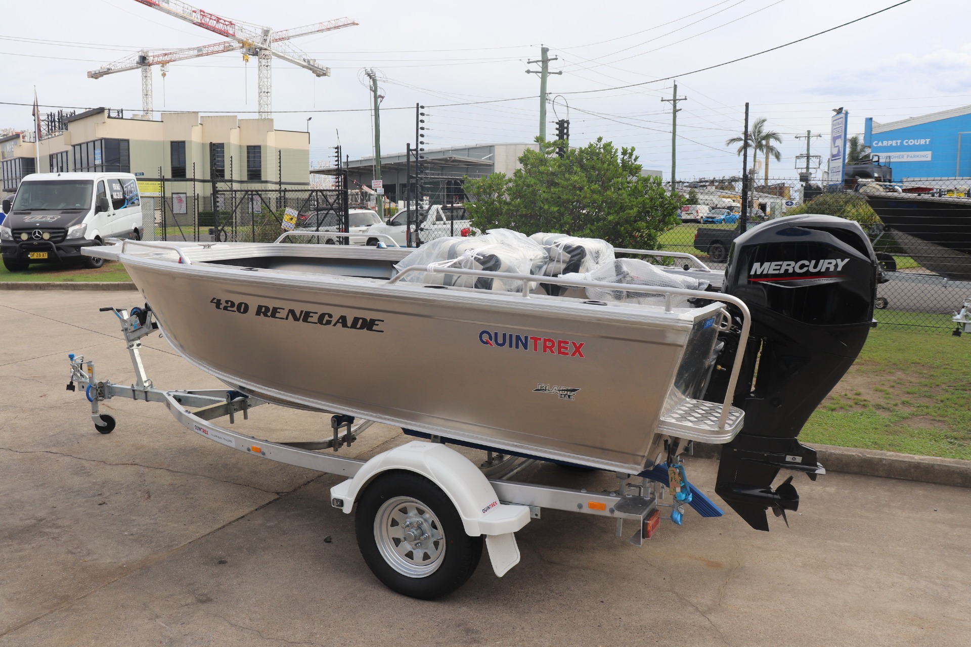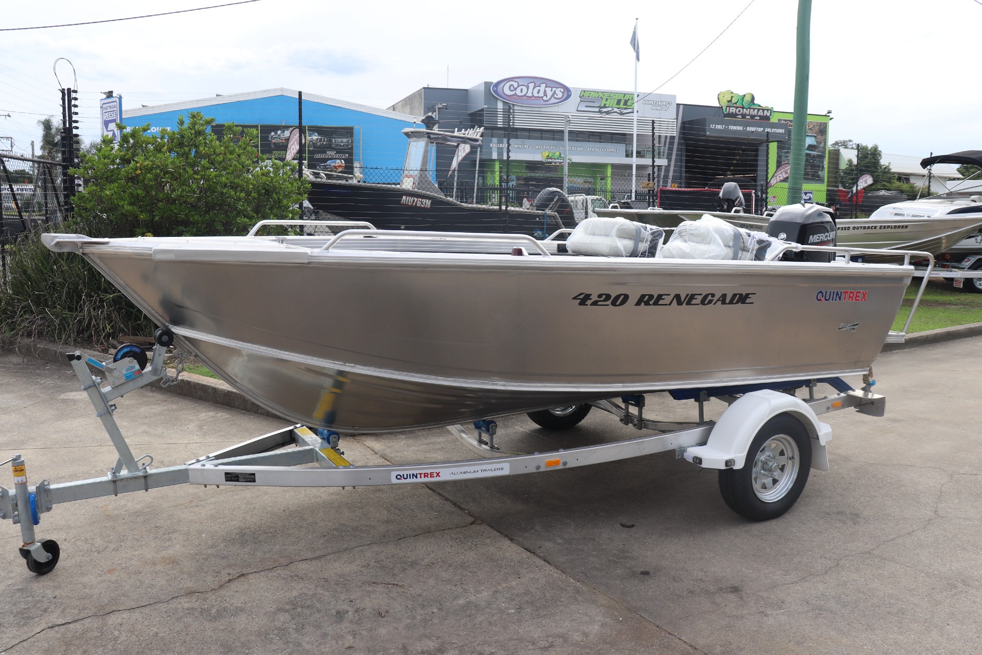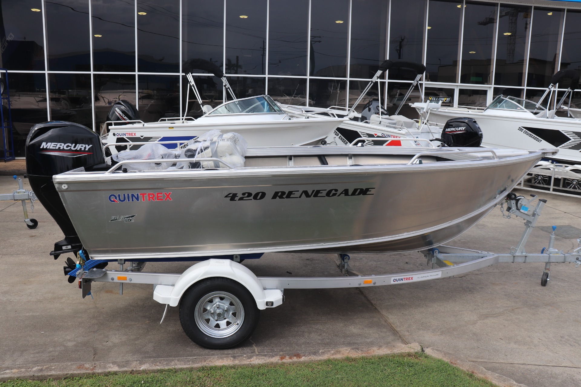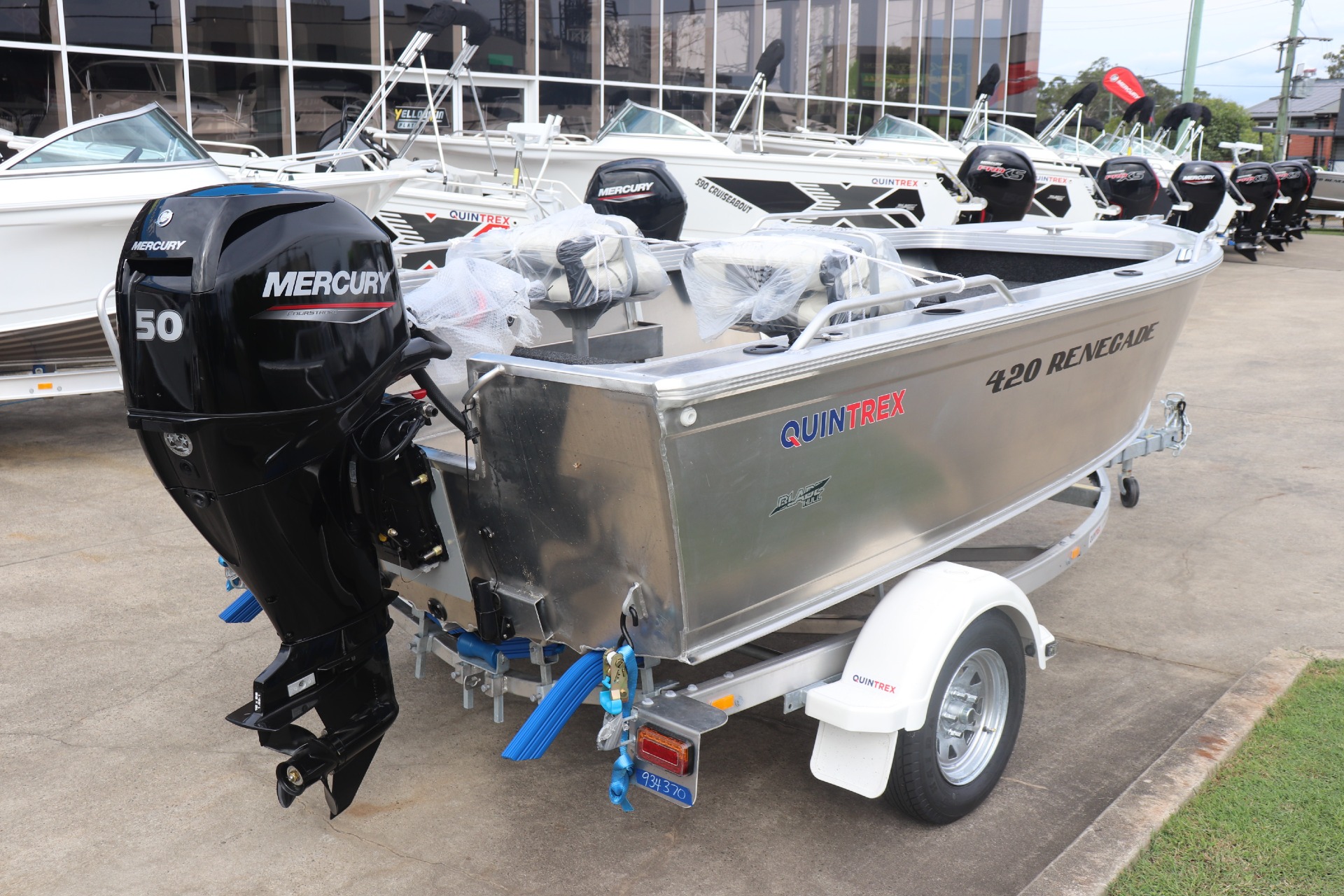 QUINTREX 420 RENEGADE TS POWERED BY A MERCURY 50ELHPT 4 STROKE ON A QUINTREX ALLOY TRAILER