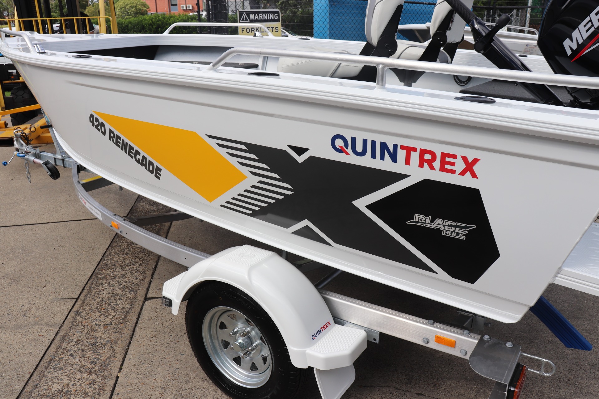 QUINTREX 420 RENEGADE TS POWERED BY A MERCURY 50ELHPT 4 STROKE ON A QUINTREX ALLOY TRAILER