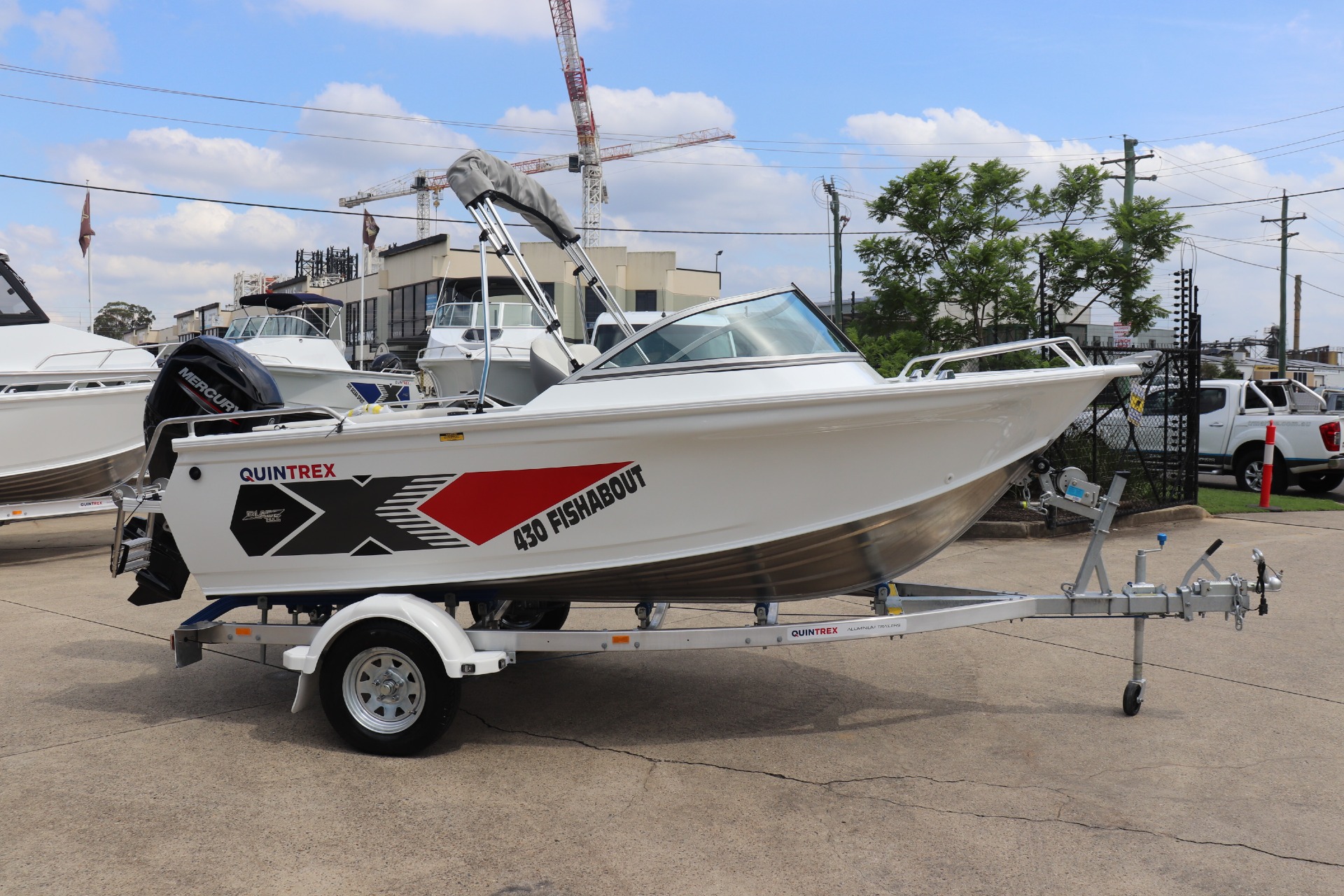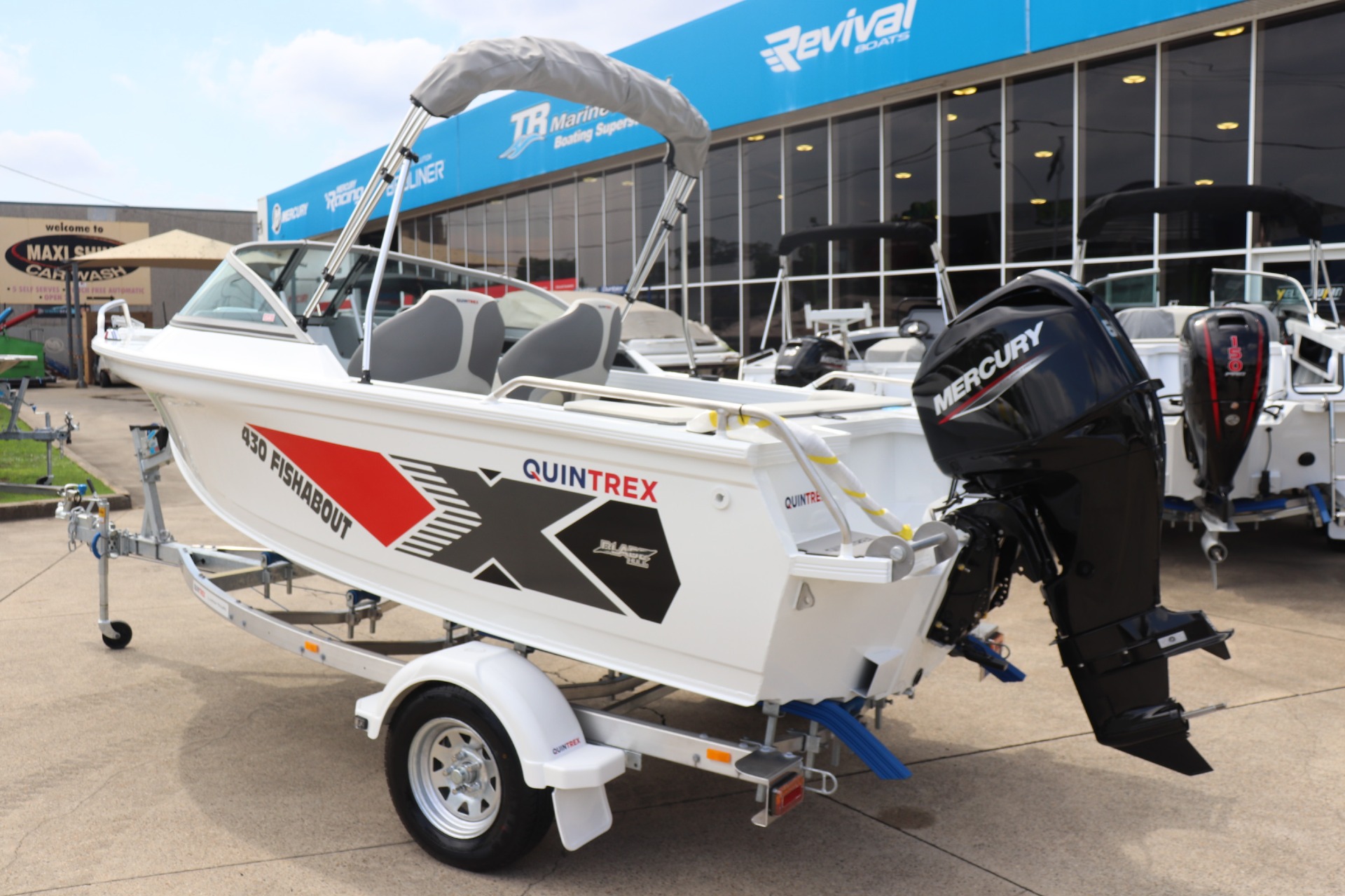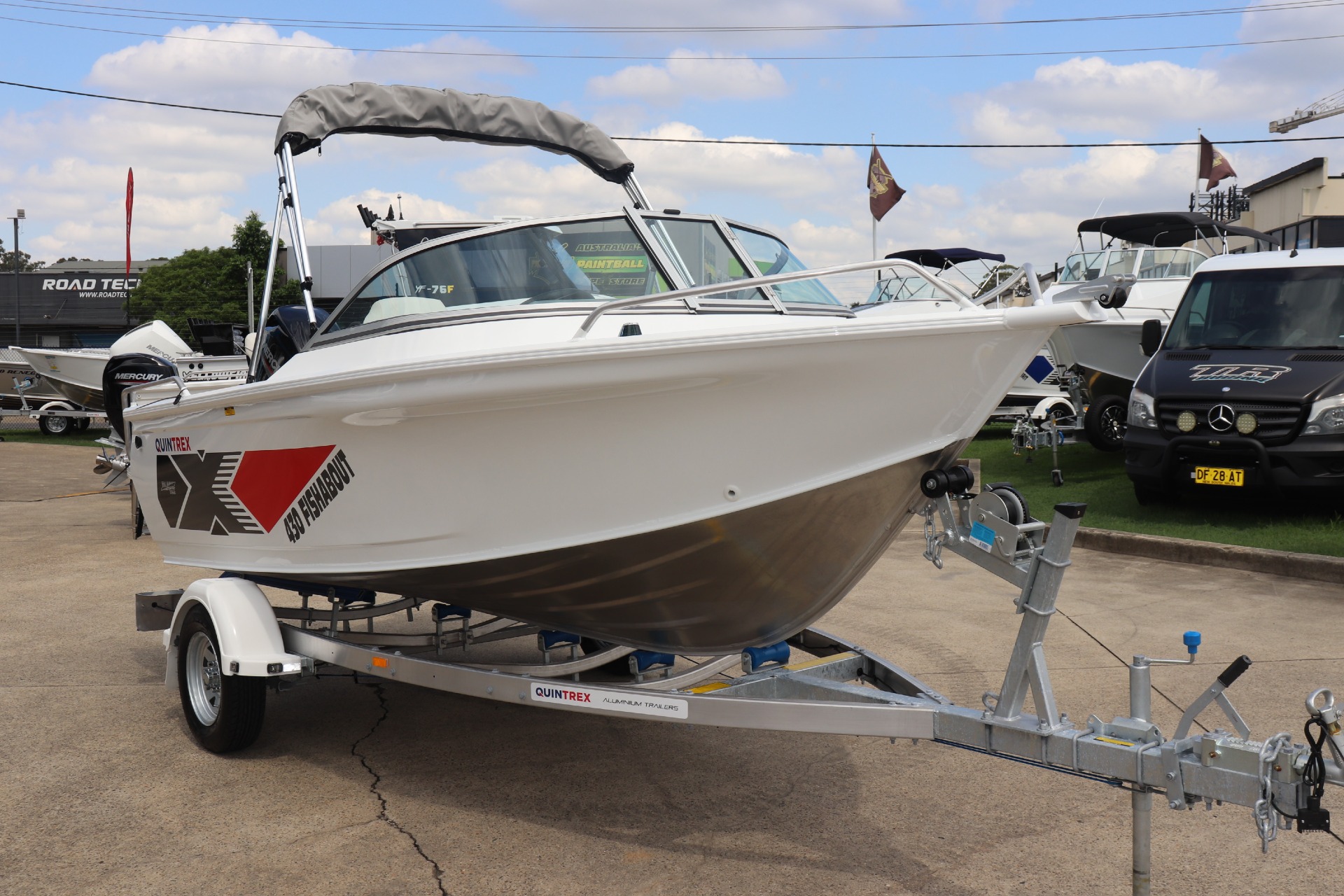 QUINTREX 430 FISHABOUT POWERED BY A MERCURY 60HP 4 STROKE ON A QUINTREX ALLOY TRAILER ***FRESH OFF THE TRUCK*** ***MERCURY GET MORE PROMOTION INCLUDED IN PRICE*** PLEASE READ... TR MARINE is a Highly Reputable NSW Quintrex Specialist dealership. All our Quintrex Boats are CORRECTLY advertised showing Standard specifications and detailing the factory fitted options that have been installed to assure you are buying the right Boat. The photos we display in our ads are of the exact boat for sale, powered by the best suggested Horsepower engine assuring you are buying the Perfect boat from a reputable Dealership at a fair price. FEATURES INCLUDE: ALL STANDARD FEATURES: Battery Box Bow Roller Glove Box Pole Mount Insert Rear Ladder Rod Holders (2) Anchorwell Cleat On Front Deck Extruded Side Decks Fully Weld Gunnels & Side Decks Lean Through Dash Side Pockets Sports Dash Transducer Brackets x 2 Painted Hull Rail: Transom Grabrail Rails Rails: Side Windscreen Seat Slider Seats: Angler Sport Seats: Rear Lounge and Backrest Helm: Mechanical Tilt Steering ADDITIONAL FACTORY FEATURES INCLUDE: Comfort Pack - Bimini & Envelope - Deluxe rear Lounge & Backrest - Upgraded Maritime Sports Seats Flipper Guide Kit Cargo/Luggage Netting Garmin Striker VIVID 7SV Mercury SC1000 Digital Tacho Upgraded Steering Wheel TR MARINE ADDITIONAL FEATURES INCLUDE: 12 Months NSW Boat & Trailer Registrations Paddle, Bucket, Horn & Torch Rear Tie Down Straps Fire Extinguisher Earmuffs (Engine Flusher) 5 x PFD1 Life Jackets Anchor, Rope & Chain *We have a well-stocked undercover Showroom and are open 6 days a week. *Need Finance? We're here to help get you on the water sooner with Mercury Marine Finance *Give us a call today to speak with one of our friendly team members 6 Year Mercury Factory Engine Warranty*