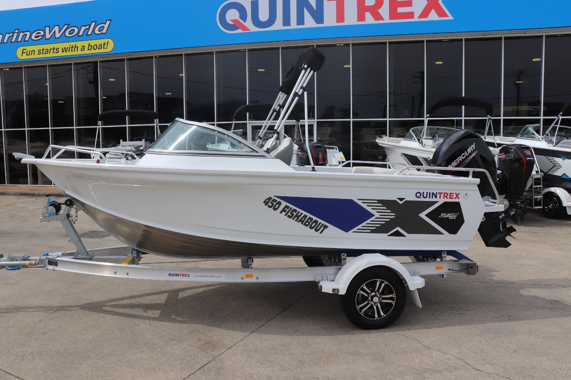 QUINTREX 450 FISHABOUT POWERED BY A MERCURY 60HP 4 STROKE ON A QUINTREX ALLOY TRAILER