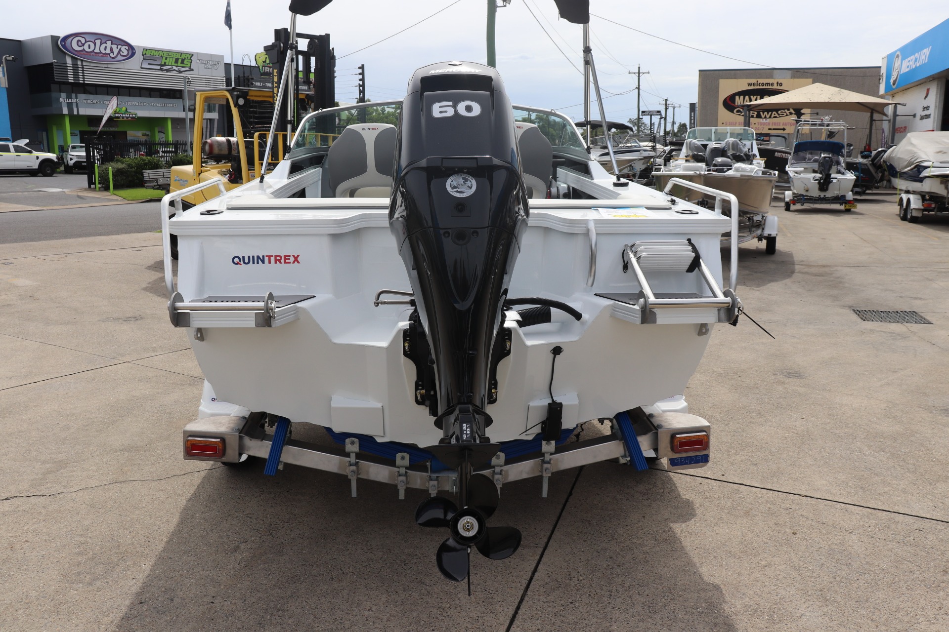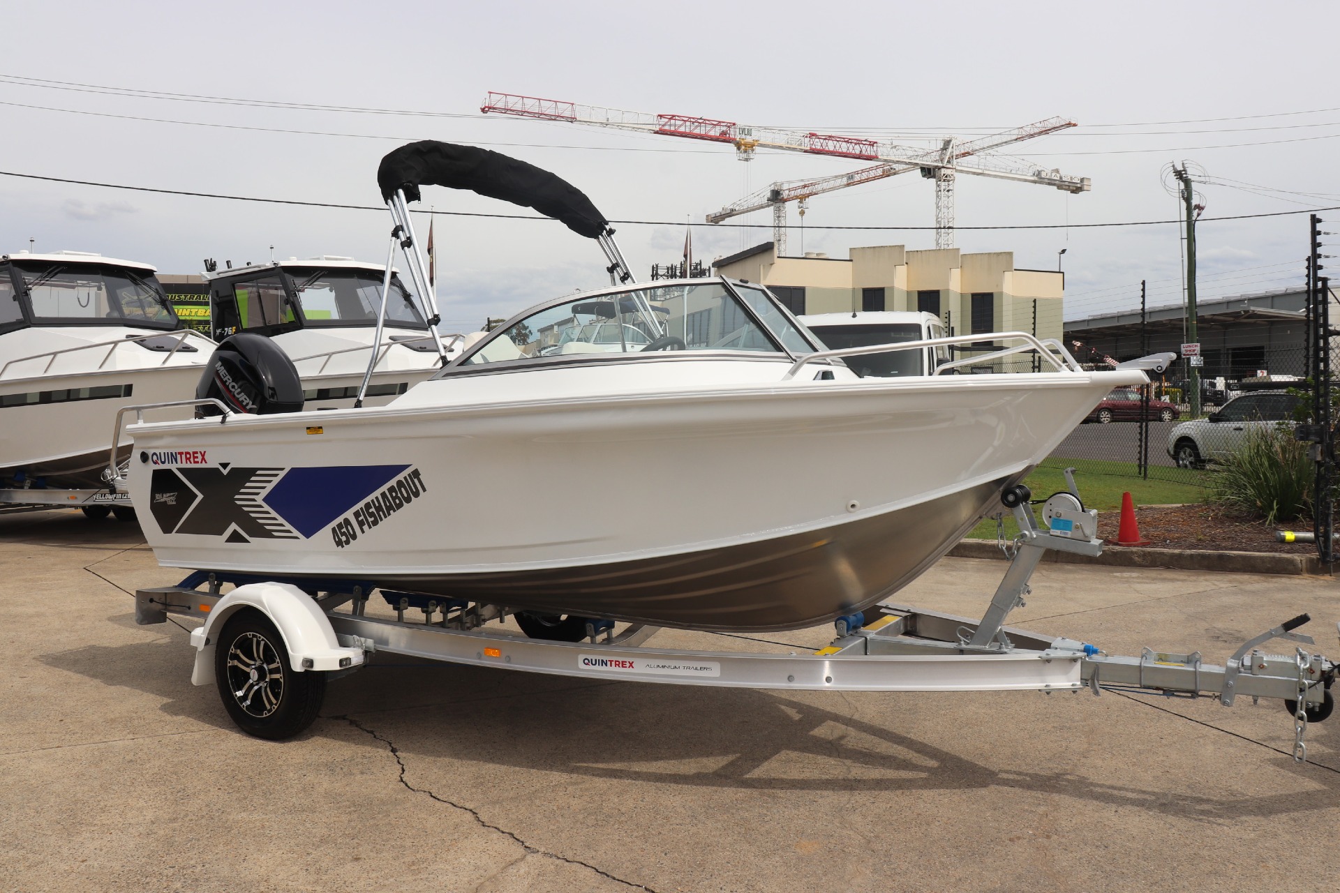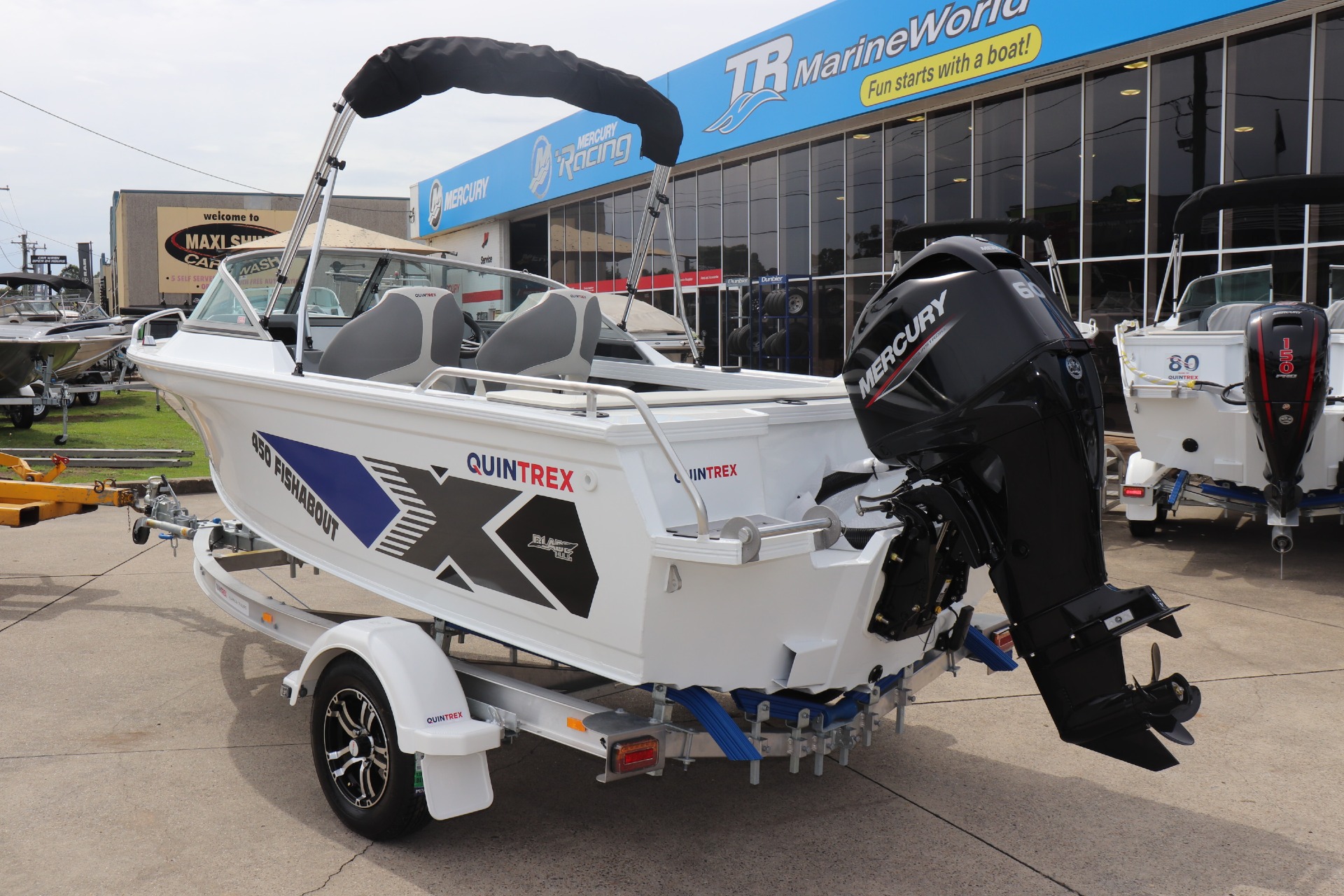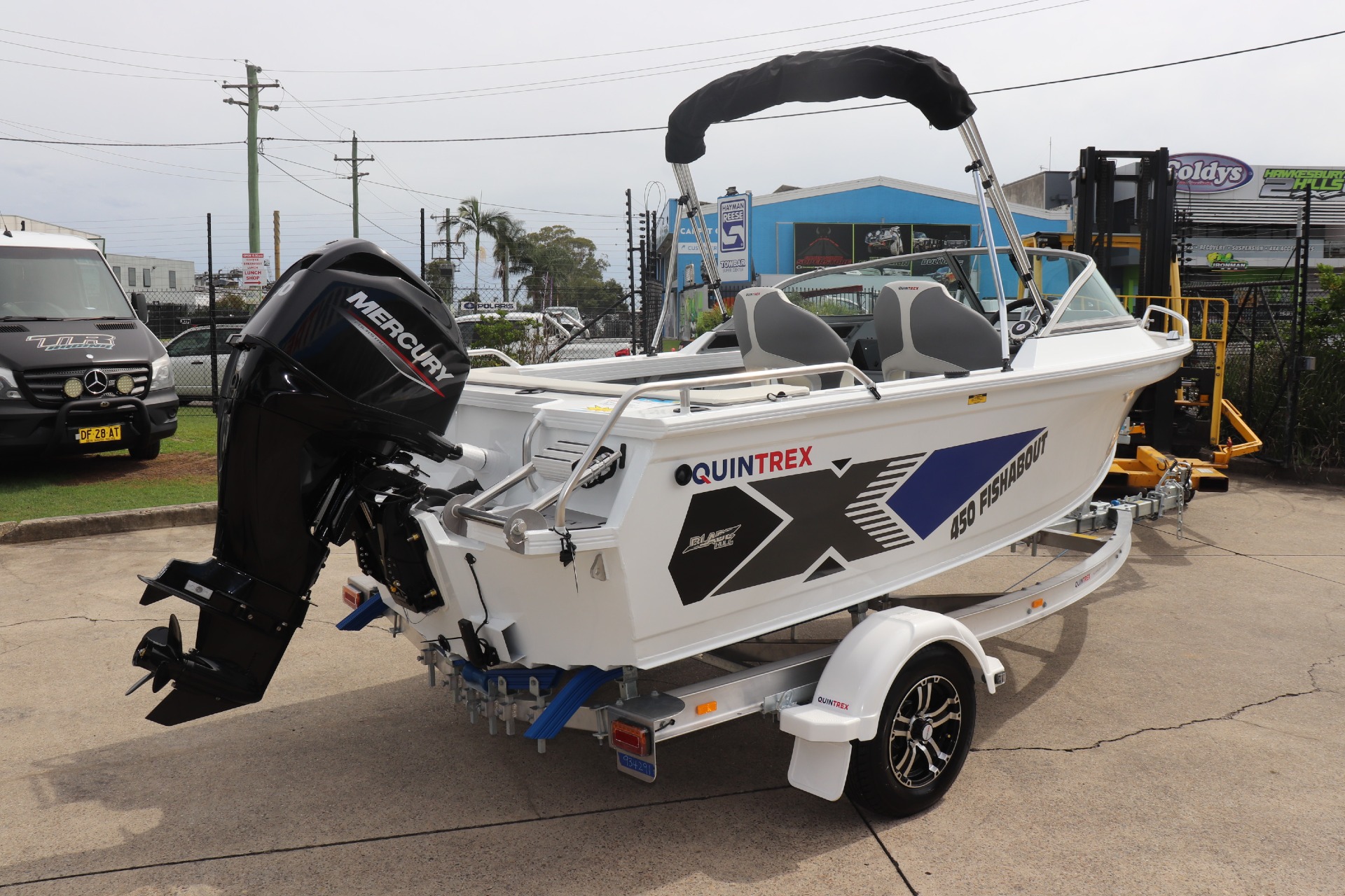QUINTREX 450 FISHABOUT POWERED BY A MERCURY 60HP 4 STROKE ON A QUINTREX ALLOY TRAILER ***MERCURY GET MORE PROMOTION INCLUDED IN PRICE*** PLEASE READ.. TR MARINE is a Highly Reputable NSW Quintrex Specialist dealership. All our Quintrex Boats are CORRECTLY advertised showing Standard specifications and detailing the factory fitted options that have been installed to assure you are buying the right Boat. The photos we display in our ads are of the exact boat for sale, powered by the best suggested Horsepower engine assuring you are buying the Perfect boat from a reputable Dealership at a fair price. FEATURES INCLUDE: ALL STANDARD FEATURES: Battery Box Bow Roller Glove Box Pole Mount Insert Rear Ladder Rod Holders (2) Anchorwell Cleat On Front Deck Extruded Side Decks Fully Weld Gunnels & Side Decks Lean Through Dash Side Pockets Sports Dash Transducer Brackets x 2 Painted Hull Rail: Transom Grabrail Rails Rails: Side Windscreen Seat Slider Seats: Angler Sport Seats: Rear Lounge and Backrest Helm: Mechanical Tilt Steering ADDITIONAL FACTORY FEATURES INCLUDE: Comfort Pack - Bimini & Envelope - Deluxe Rear Lounge & Backrest - Upgraded Maritime Sports Seats Cargo/Luggage Netting Garmin Striker VIVID 7SV Mercury SC1000 Digital Tacho Upgraded Steering Wheel TR MARINE ADDITONAL OPTIONS INCLUDE: 12 Months NSW Boat & Trailer Registrations Paddle, Bucket, Horn & Torch Rear Tie Down Straps Fire Extinguisher Anchor, Rope & Chain Earmuffs (Engine Flusher) 5 x PFD1 Life Jackets *We have a well-stocked undercover Showroom and are open 6 days a week. *Need Finance? We're here to help get you on the water sooner with Mercury Marine Finance *Give us a call today to speak with one of our friendly team members 6 Year Mercury Factory Engine Warranty*