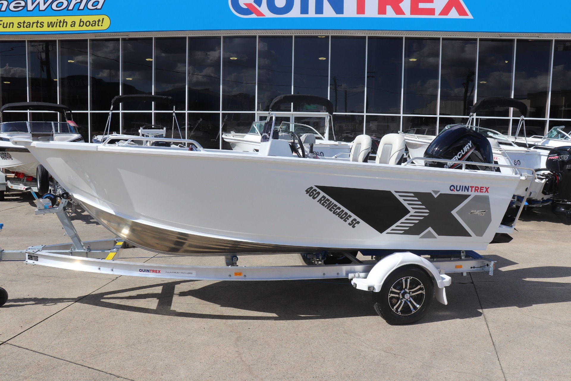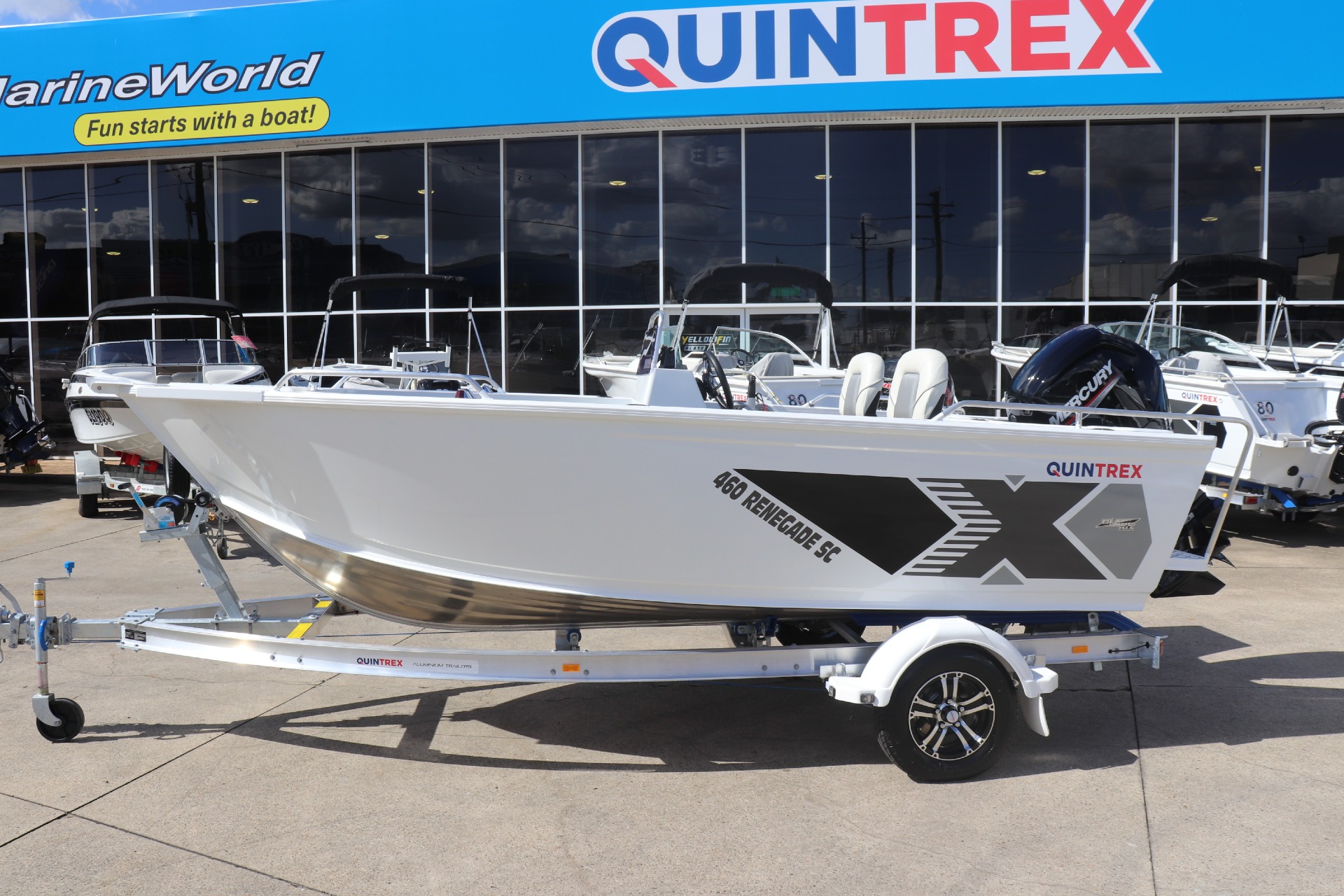 QUINTREX 460 RENEGADE SC POWERED BY A MERCURY 75HP 4 STROKE ON A QUINTREX ALLOY TRAILER