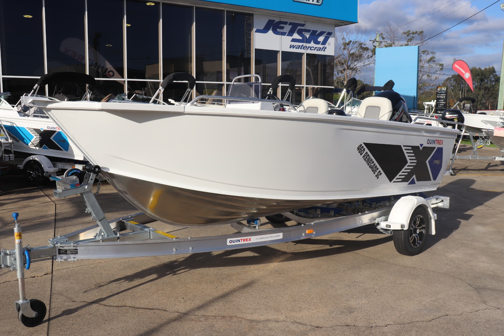 QUINTREX 460 RENEGADE SC POWERED BY A MERCURY 75HP 4 STROKE ON A QUINTREX ALLOY TRAILER