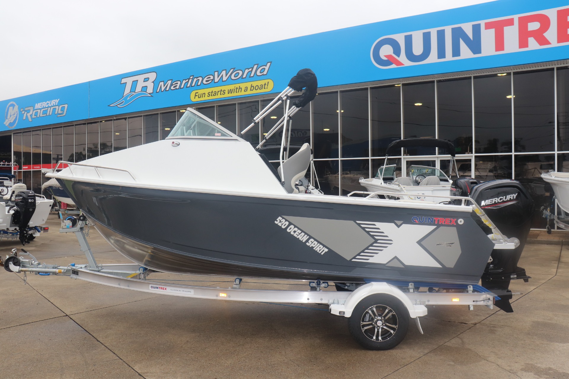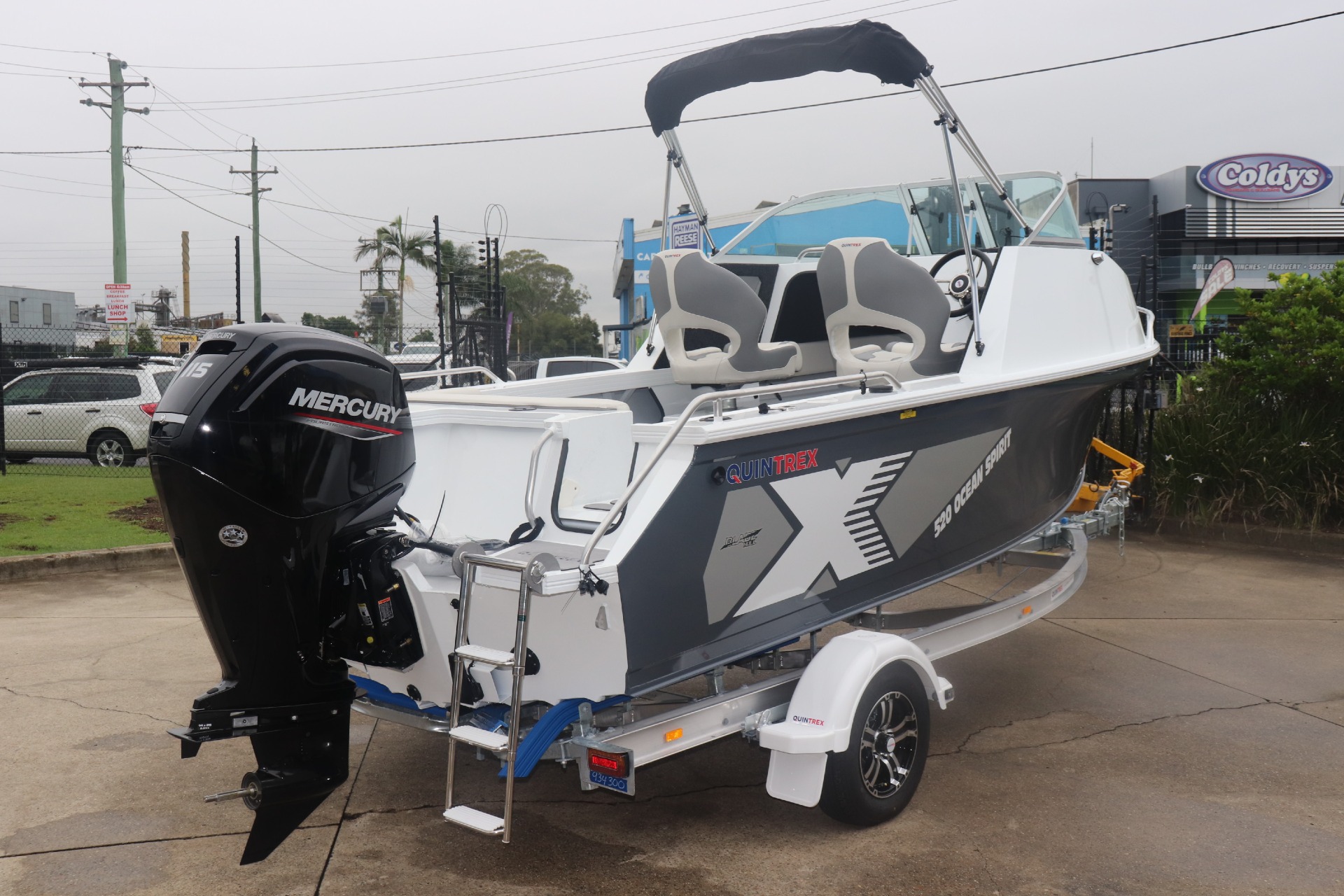 QUINTREX 520 OCEAN SPIRIT POWERED BY A MERCURY 115HP 4 STROKE ON A QUINTREX ALLOY TRAILER