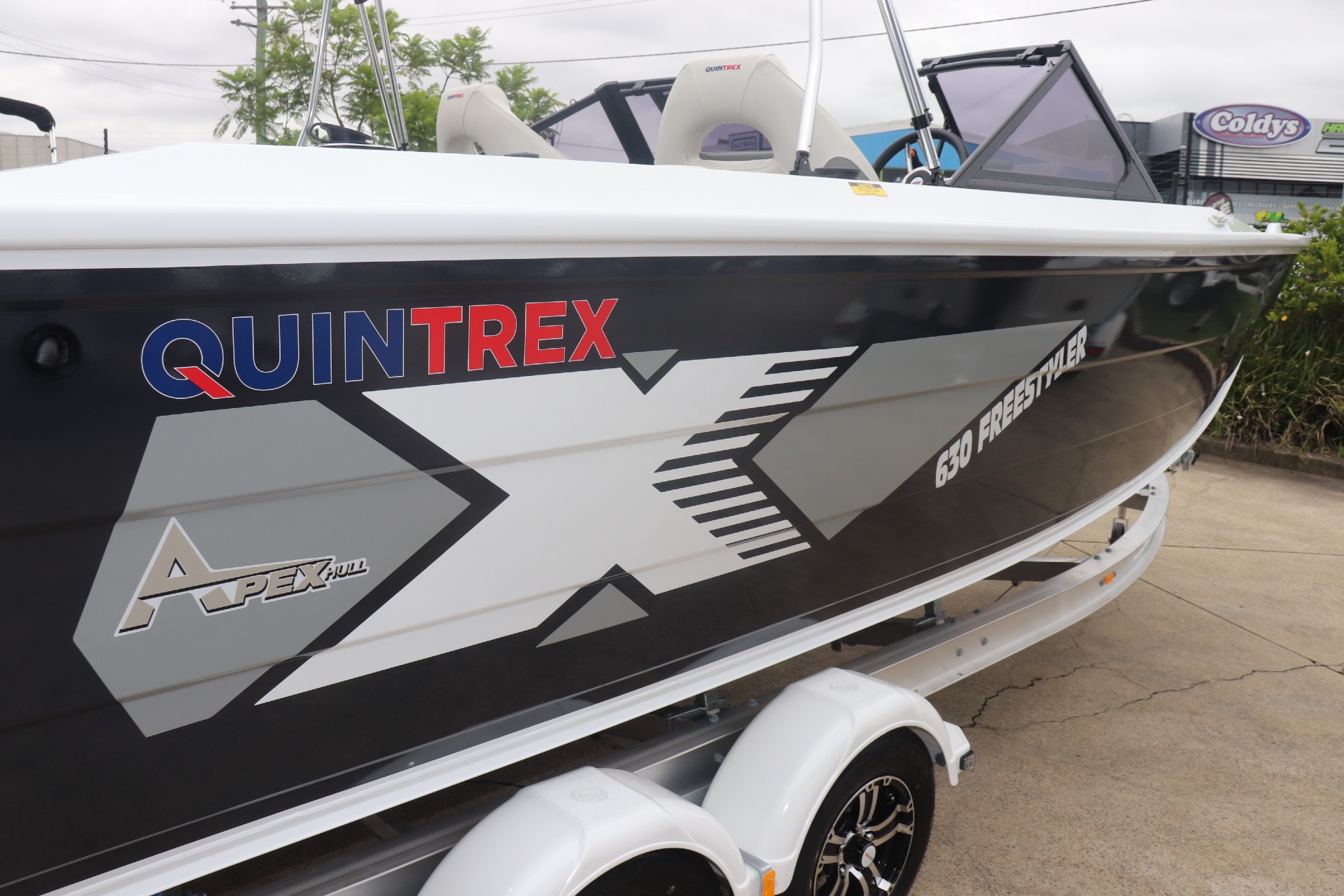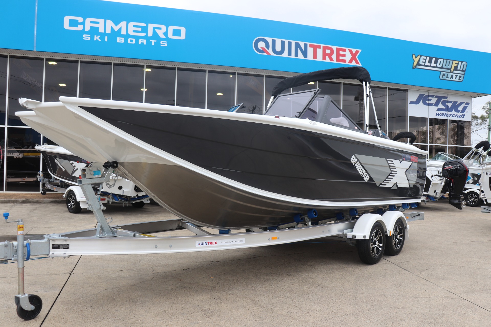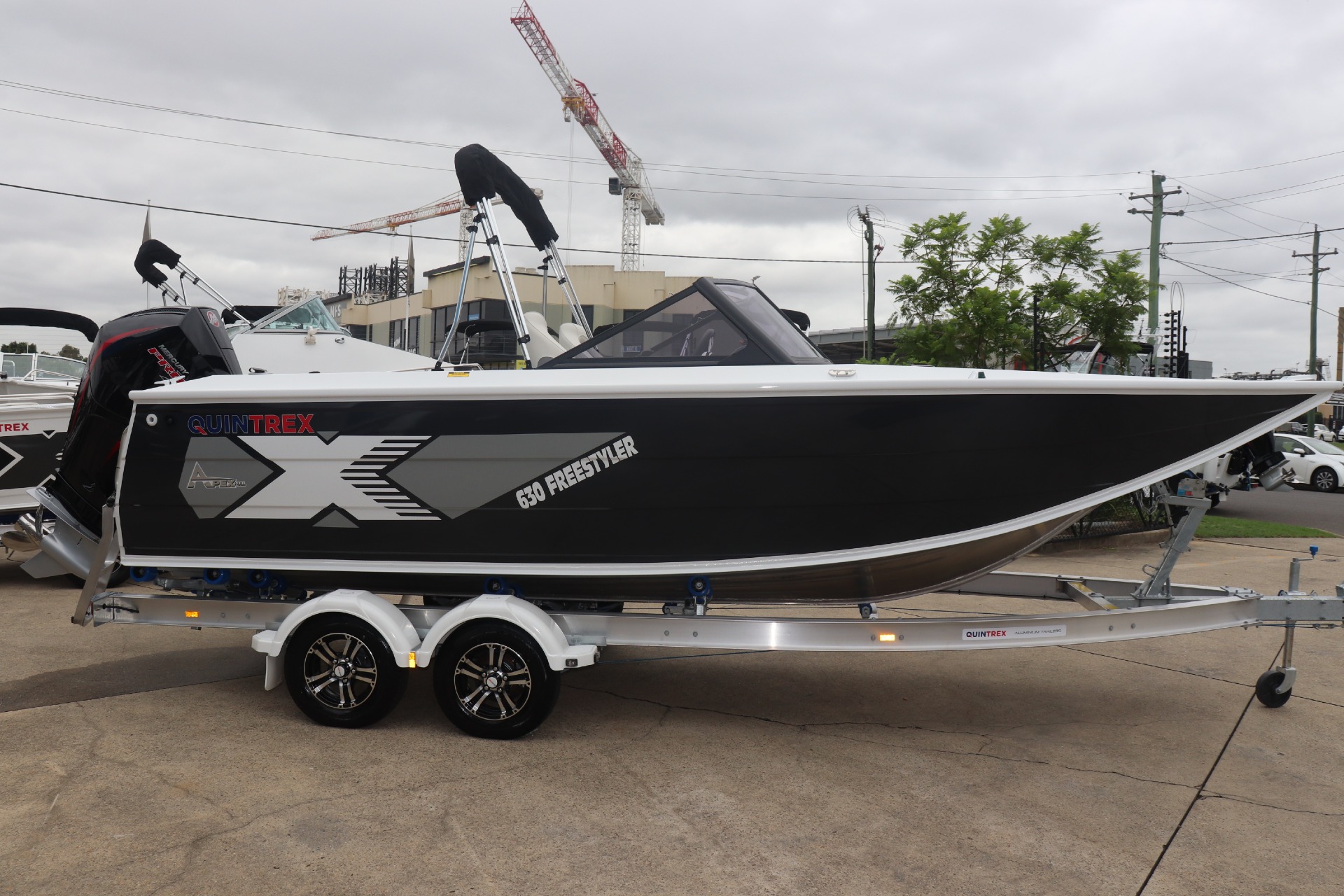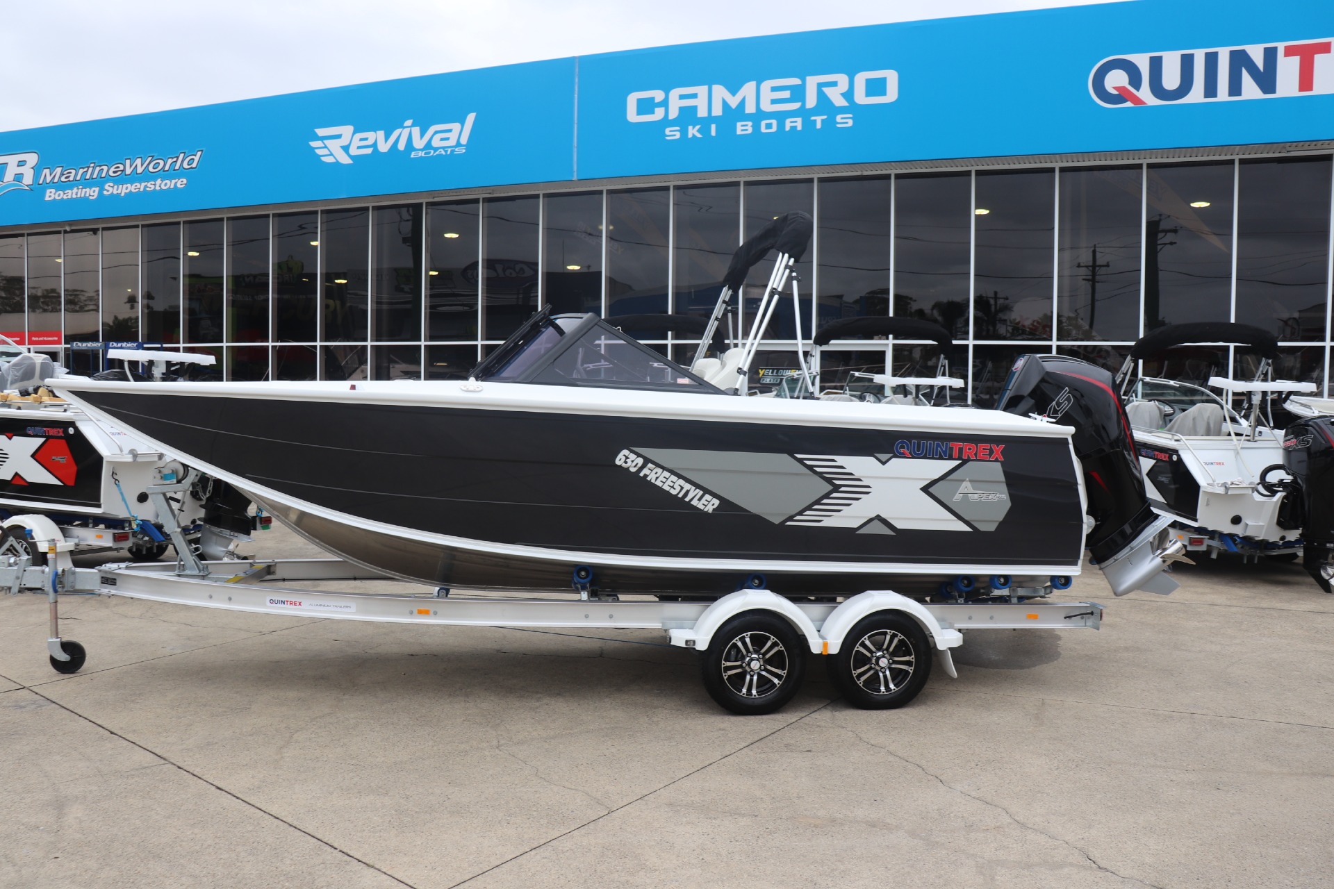 QUINTREX 630 FREESTYLER POWERED BY A MERCURY 200HP PRO XS DTS 4 STROKE ON A QUINTREX ALLOY TANDEM TRAILER