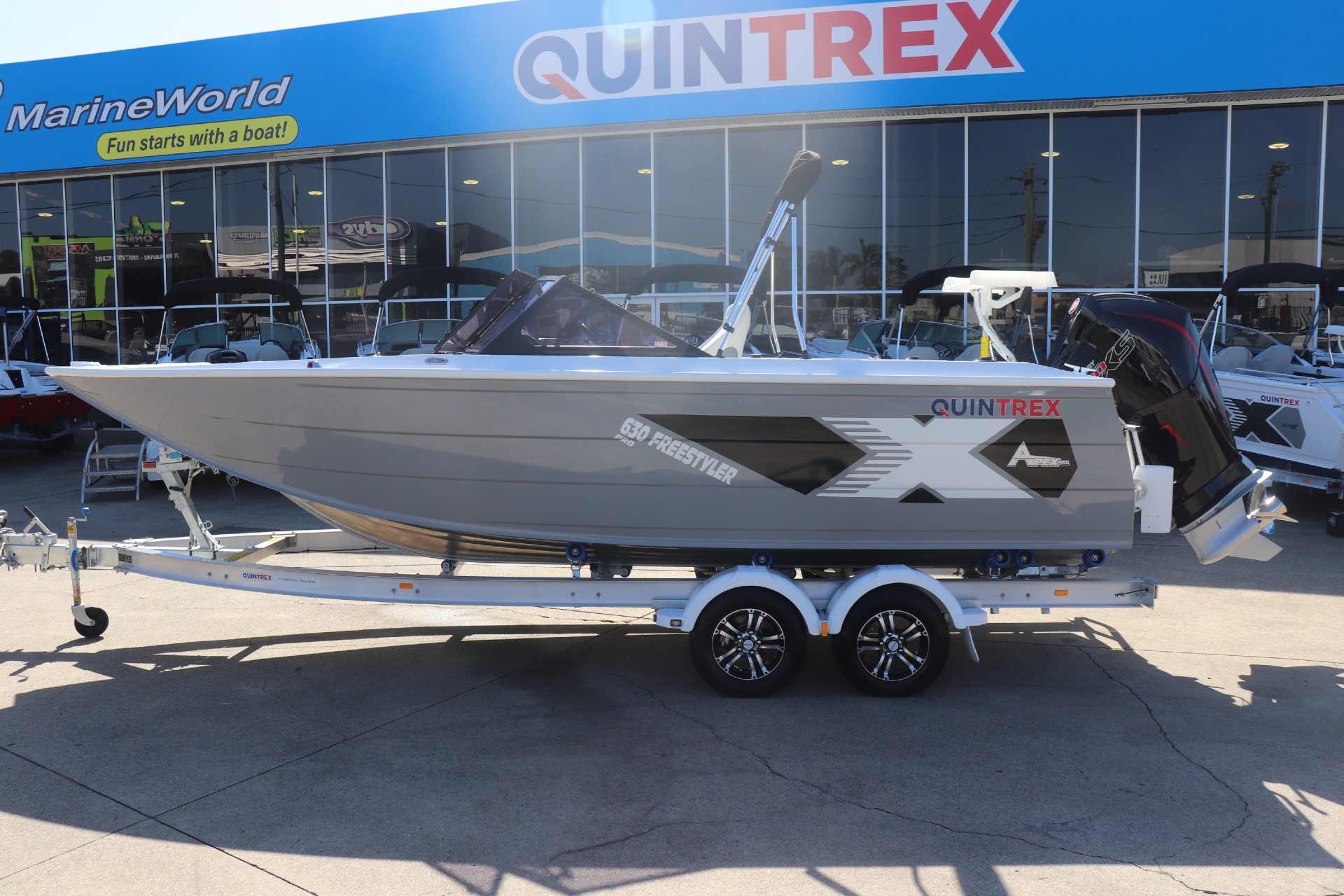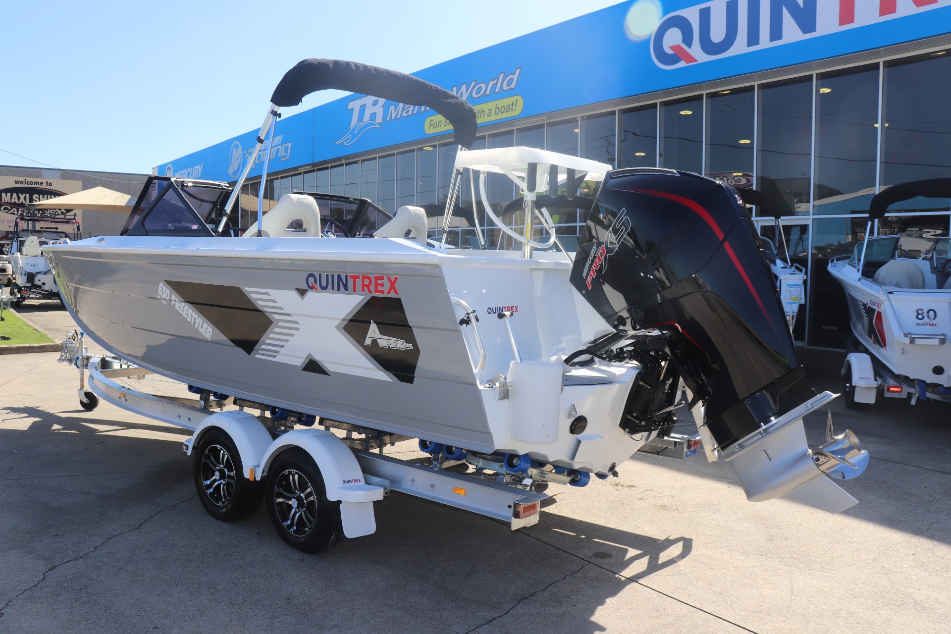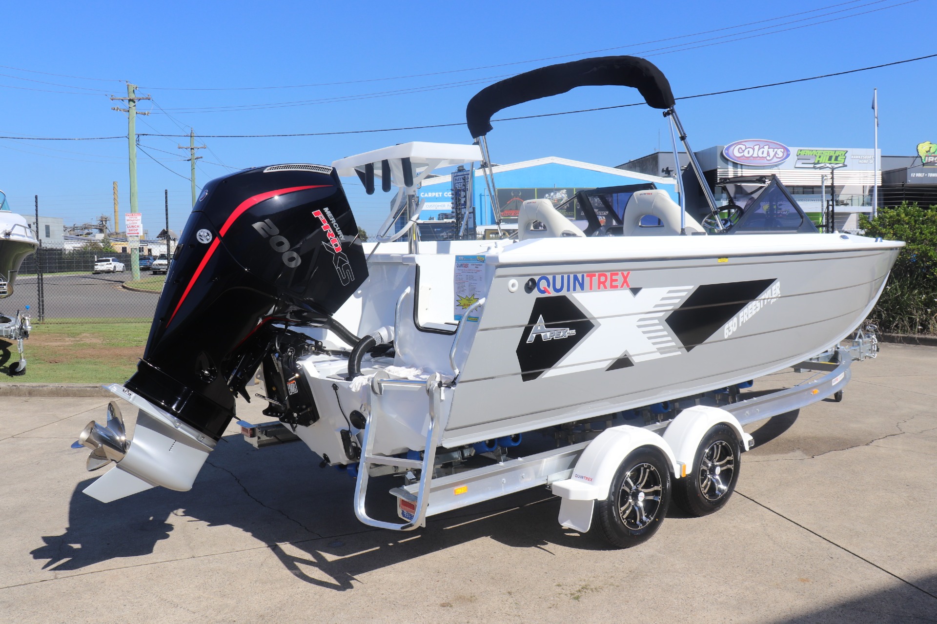 QUINTREX 630 FREESTYLER PRO POWERED BY A MERCURY 200HP PRO XS DTS 4 STROKE ON A QUINTREX ALLOY TANDEM TRAILER