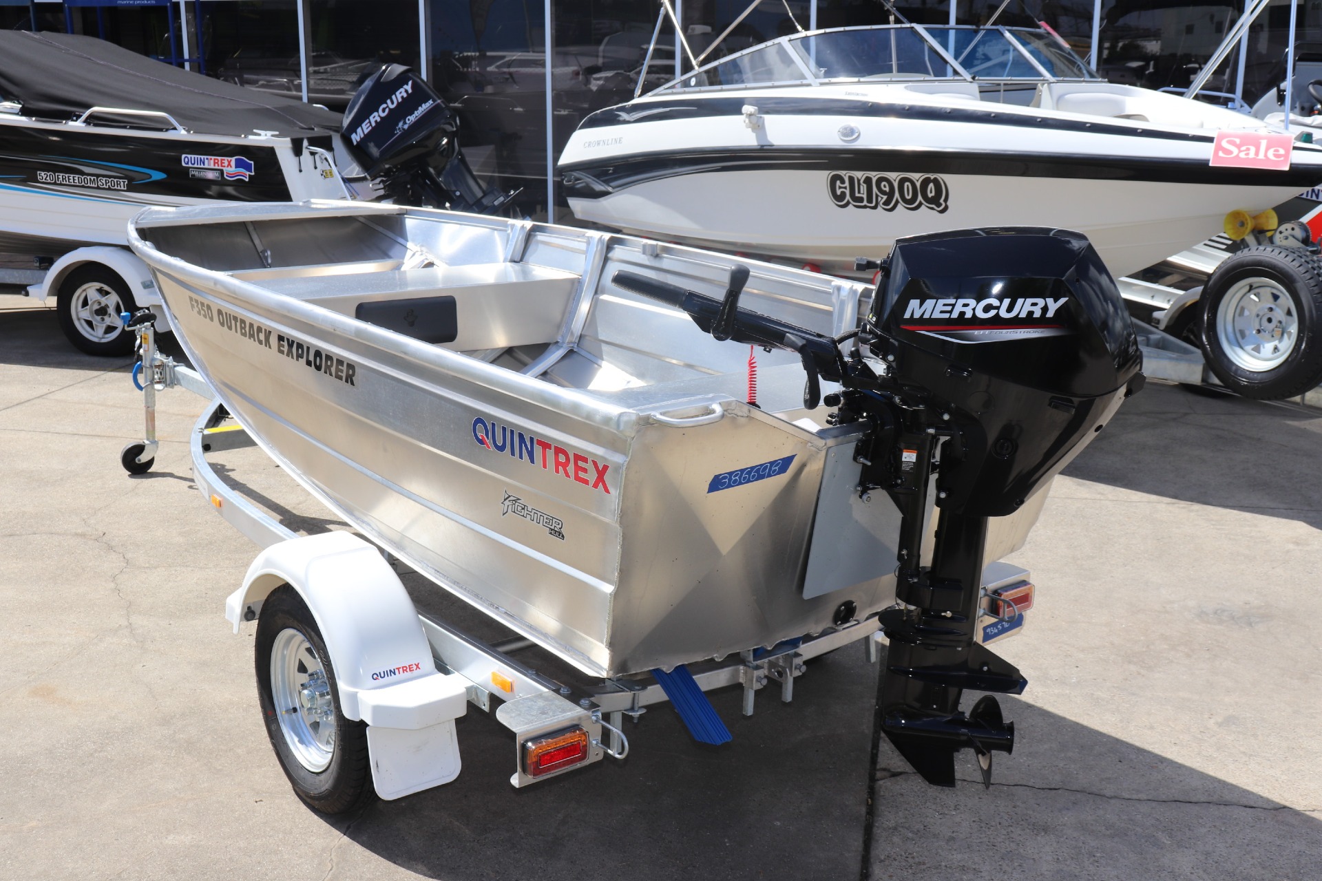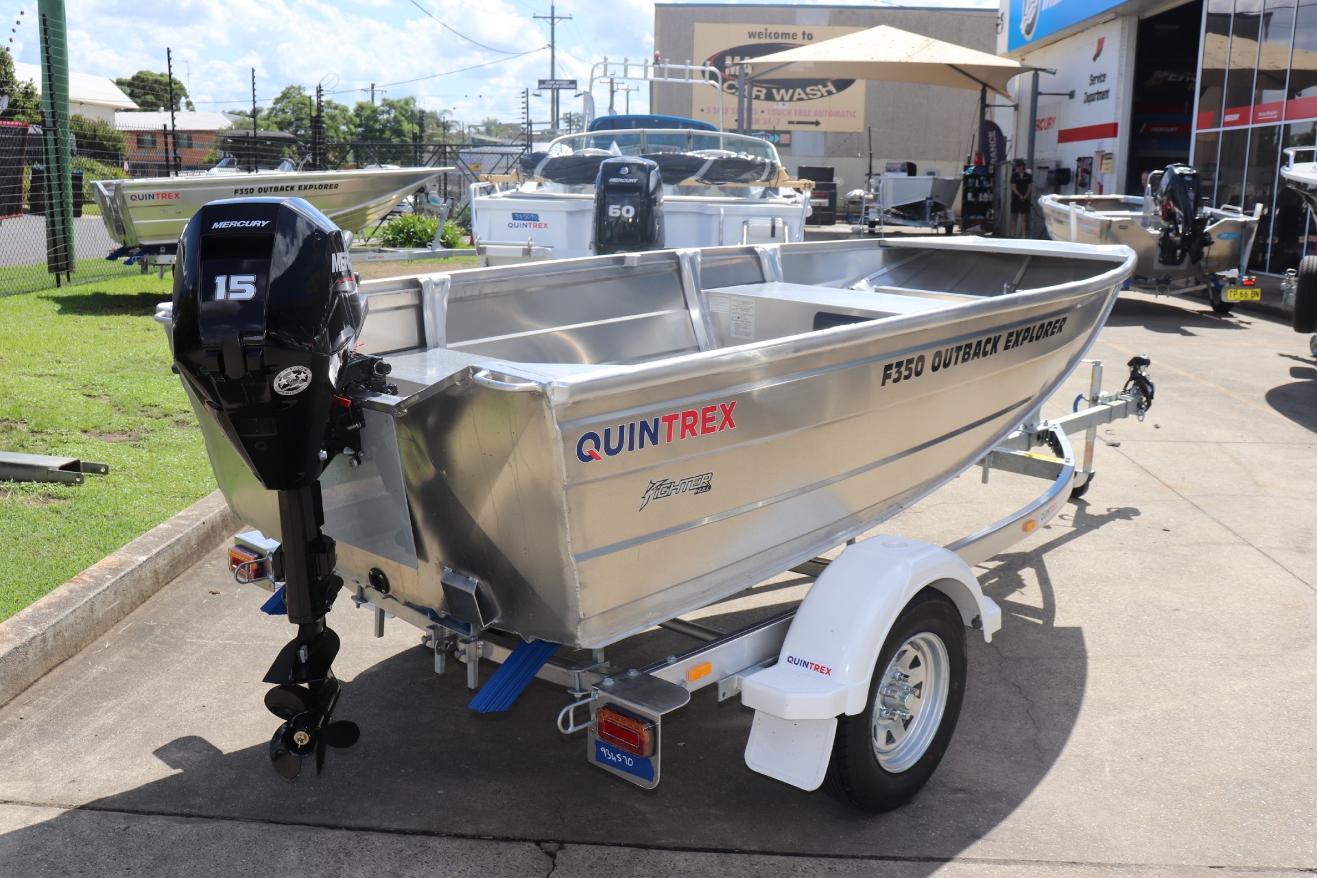 QUINTREX F350 OUTBACK EXPLORER L/S POWERED BY A MERCURY 15MLH 4 STROKE ON A QUINTREX ALLOY TRAILER