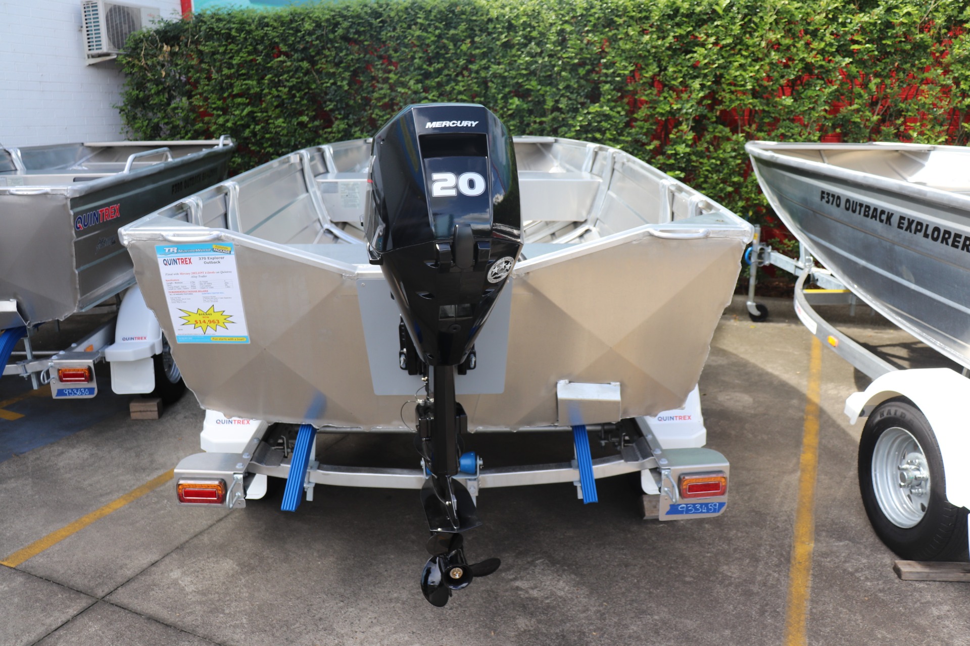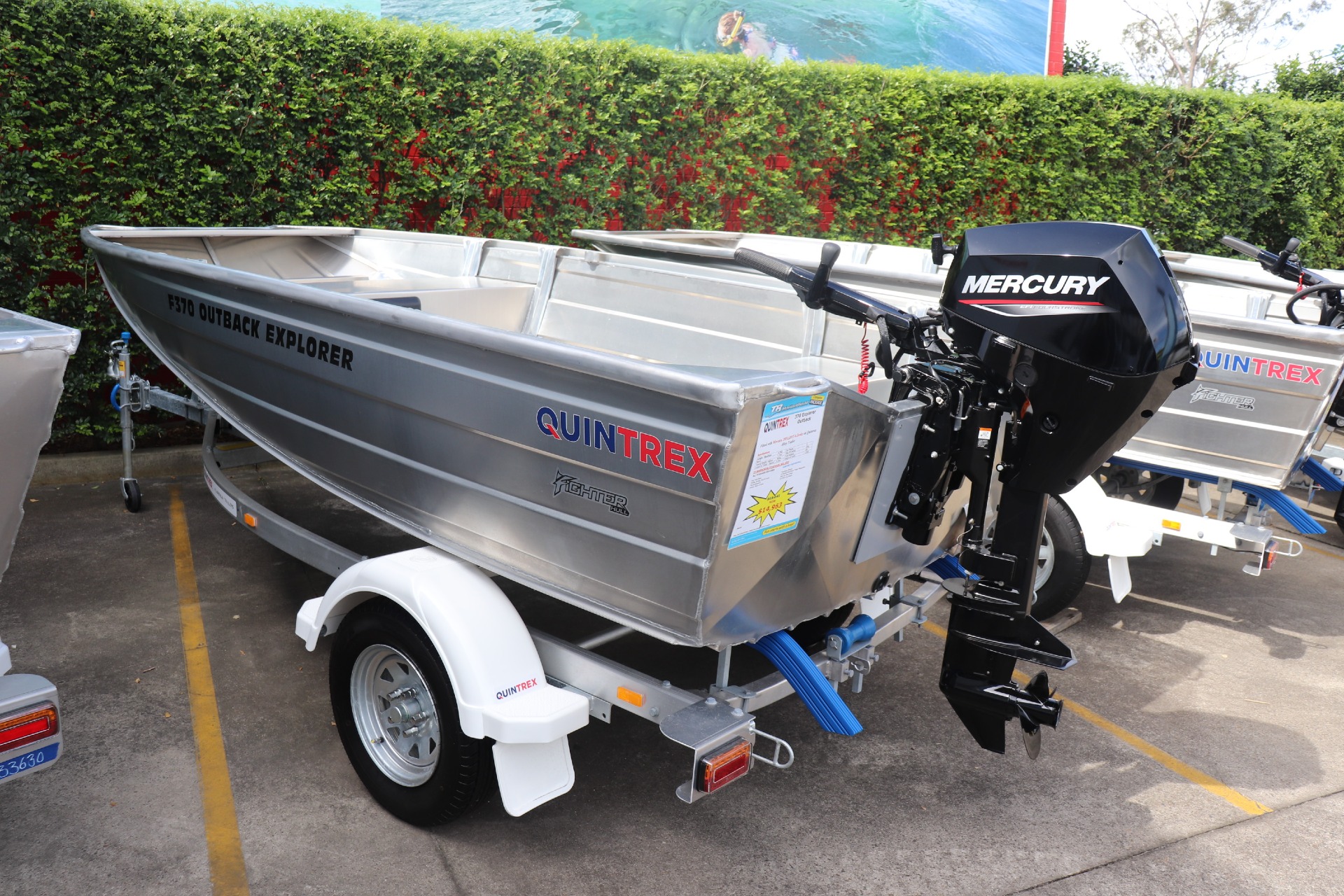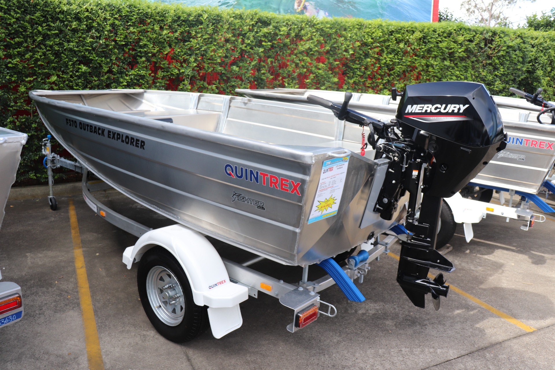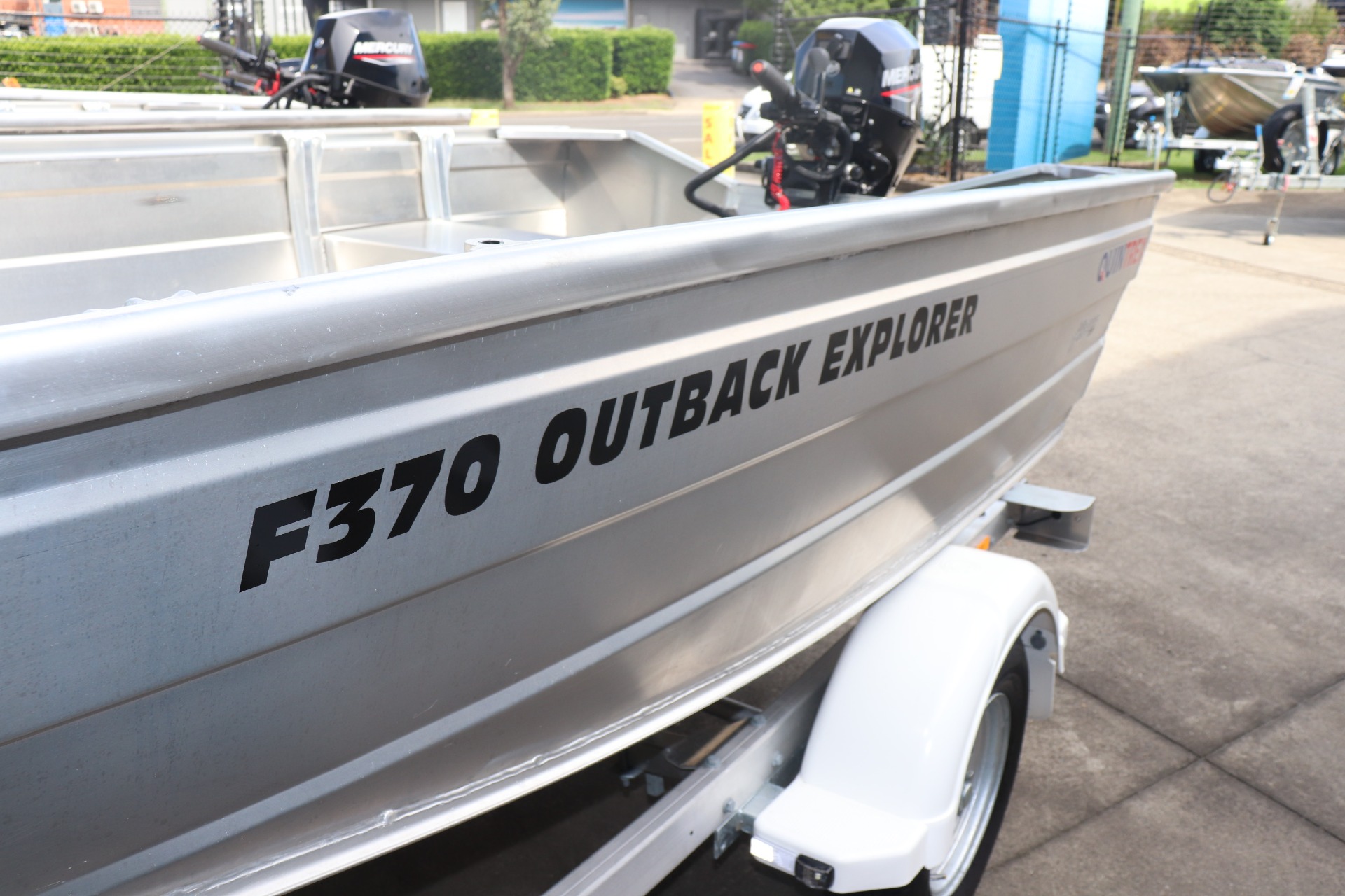 QUINTREX F370 OUTBACK EXPLORER POWERED BY A MERCURY 20ELHPT 4 STROKE ON A QUINTREX ALLOY TRAILER