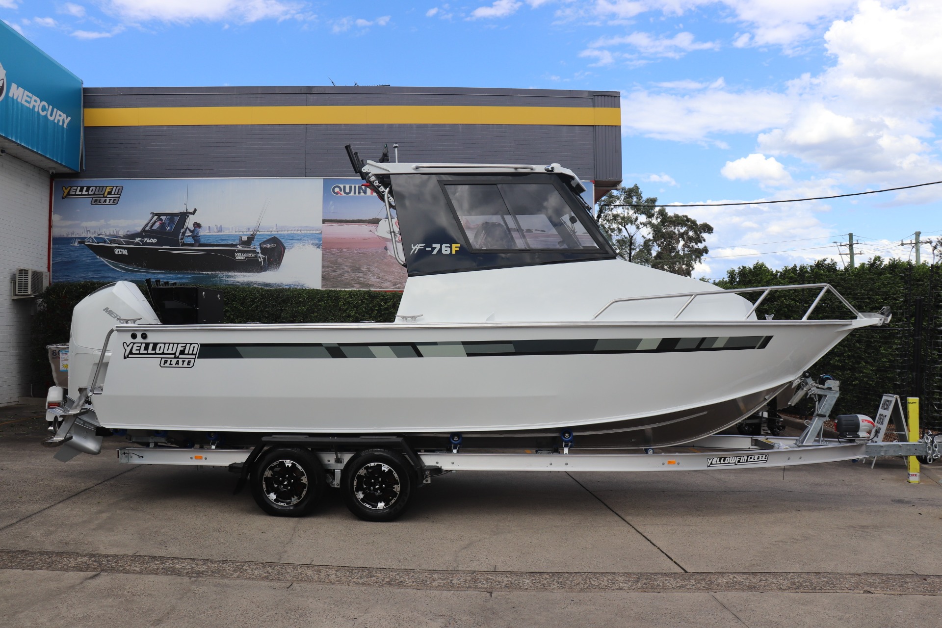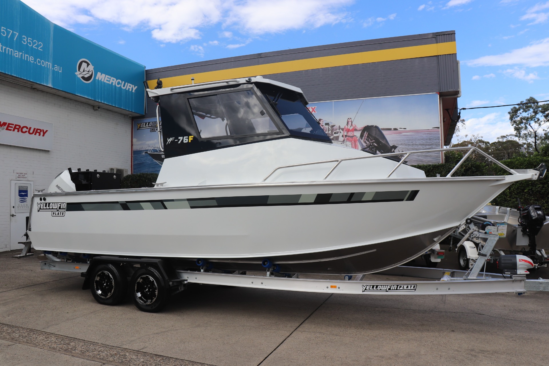 YELLOWFIN YF-76F EXTENDED CABIN POWERED BY A MERCURY 300HP DTS COLD FUSION 4 STROKE ON A YELLOWFIN TANDEM ALLOY TRAILER ***FRESH OFF THE TRUCK...ENQUIRE NOW*** PLEASE READ... TR MARINE is a Highly Reputable NSW Yellowfin Plate Specialist dealership. All our Yellowfin Boats are CORRECTLY advertised showing Standard specifications and detailing the factory fitted options that have been installed to assure you are buying the right Boat. The photos we display in our ads are of the exact boat advertised, Powered by the best suggested Horsepower engine assuring you are buying the Perfect boat from a reputable Dealership at a fair price. ALL STANDARD FEATURES: U-Dek Trim 12v Outlet Automatic Bilge Pump Carpet: Cabin Storage & Lids Carpet: Roof Cutting Board Transom Live Bait Tank Marine Radio Outrigger Mounting Plates Push Button Switch Panel Rod Holders (6) Stainless Steel Cup Holders X 4 Trim Tabs (Zipwake) Twin Battery Box & Switch Windscreen Wiper Checker plate Floor Self-Drain Floor Anchorwell Cabin Footrest Heavy Duty Cleats (5) Rod Holders (6) Reel Easy Bowroller Side Pockets Transducer Brackets x 2 Rails: Bowrails Rails: Cabin Grabrail Rails: Dash Grabrail Rails: Hard Top Rails: Internal Cabin Grabrail Rails: Transom Cabin Hatch Sliding Cabin Windows Windscreen Seats: Extreme Seats: Small Helm Seat Box with Hatch Seats: Small Nav. Seat Box GT54UHD - Transom Mount Transducer Hydraulic Steering Transom Door Seats: Cabin Backrest ADDITIONAL FACTORY FEATURES INCLUDE: Fishing Edition: - Phone Charger - Deck Wash - Dual Windscreen Wiper - Fishing Edition Steering Wheel - Fishing Pack Dash Trim - Fishing Pack Floor Trim - Exploding Fish Rod Holders - Garmin VHF 215i Marine Radio - Suspension Seat Bases - White & Blue Underwater Light - Deluxe Fishing Baitboard - Split Lid Cooler 75Ltr - Super Bag 150 - Roller Door - Combing Cushions - Offshore Plastimo Compass Cabin Carpeted Lining Battery Tray Aimar 1KW Transducer Cabin Electric Toilet Thruster Bow Mount Plate Garmin 16" Sounder + East Coast Map Card Hand Wash LED Light Kit Mercury Vessel View 403" Engine Display Hard Top Radar Bracket Cabin Infill & Cushion Transom Longe & Backrest TR MARINE ADITIONAL FEATURES INCLUDE: 12 Months NSW Boat & Trailer Registrations Paddle, Bucket, Horn & Torch Rear Tie Down Straps Fire Extinguisher *We have a well-stocked undercover Showroom and are open 6 days a week. *Need Finance? We're here to help get you on the water sooner with Mercury Marine Finance *Give us a call today to speak with one of our friendly team members 6 Year Mercury Factory Engine Warranty*