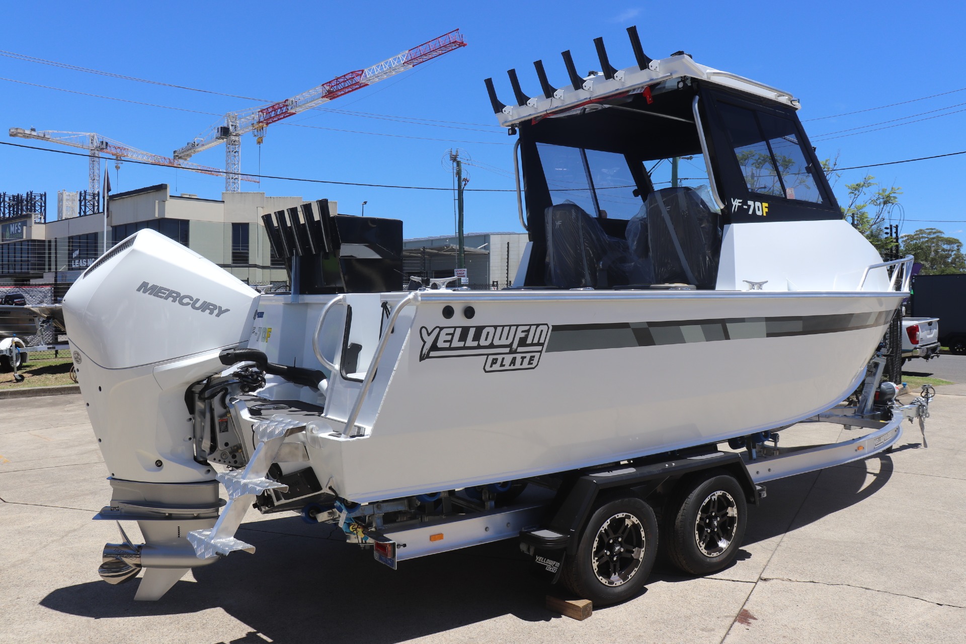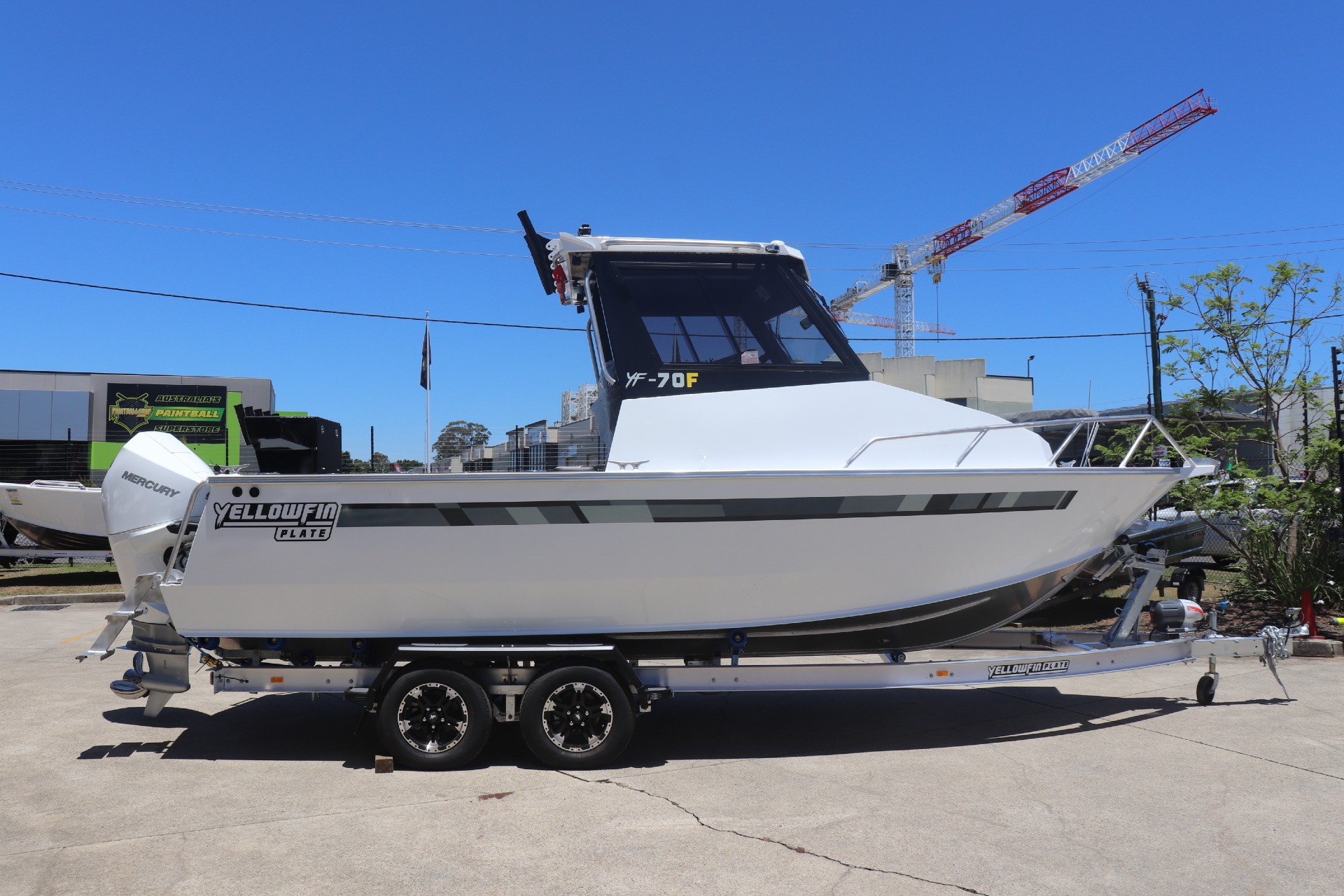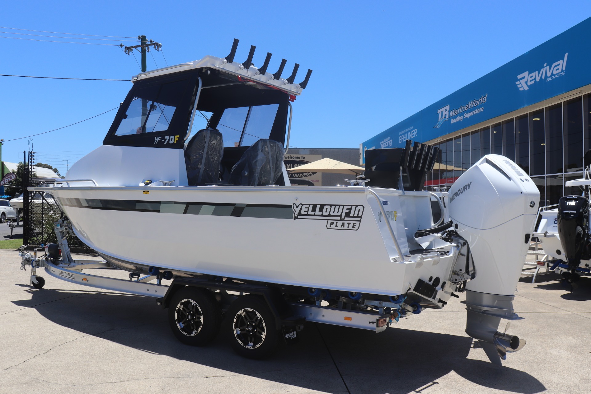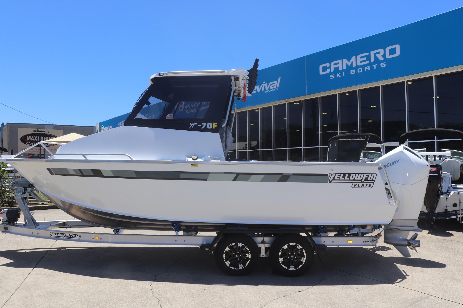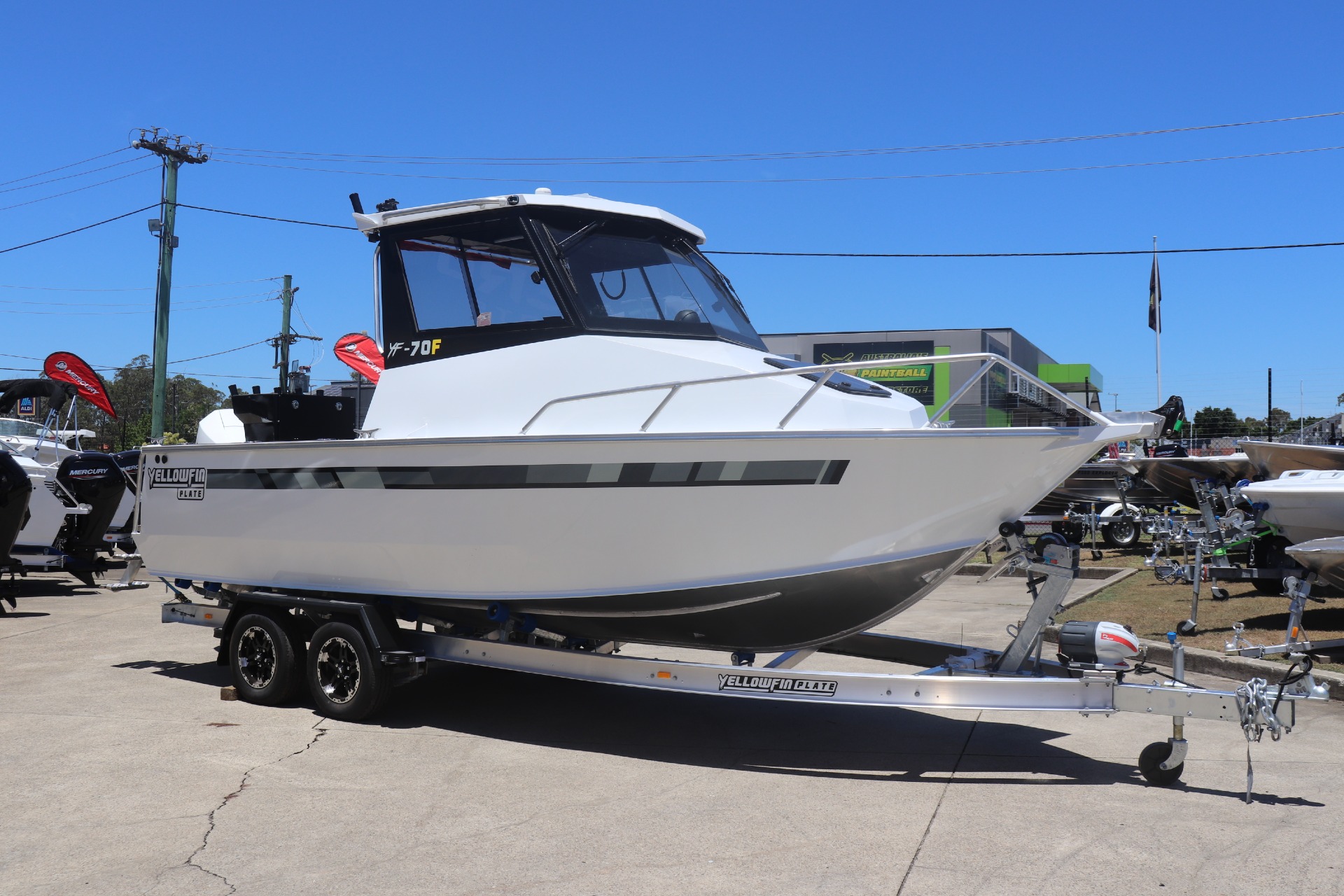 YELLOWFIN YF-70 EXTENDED CABIN POWERED BY A MERCURY 225HP DTS 4 STROKE ON A YELLOWFIN TANDEM ALLOY TRAILER