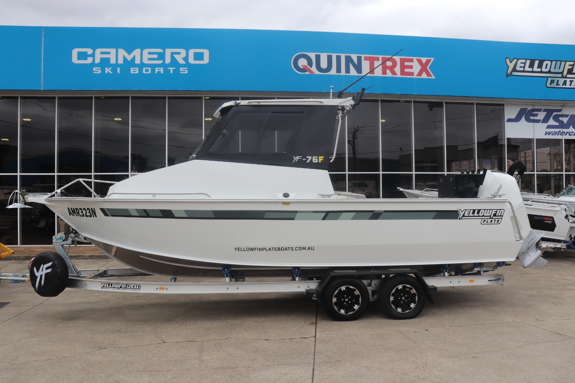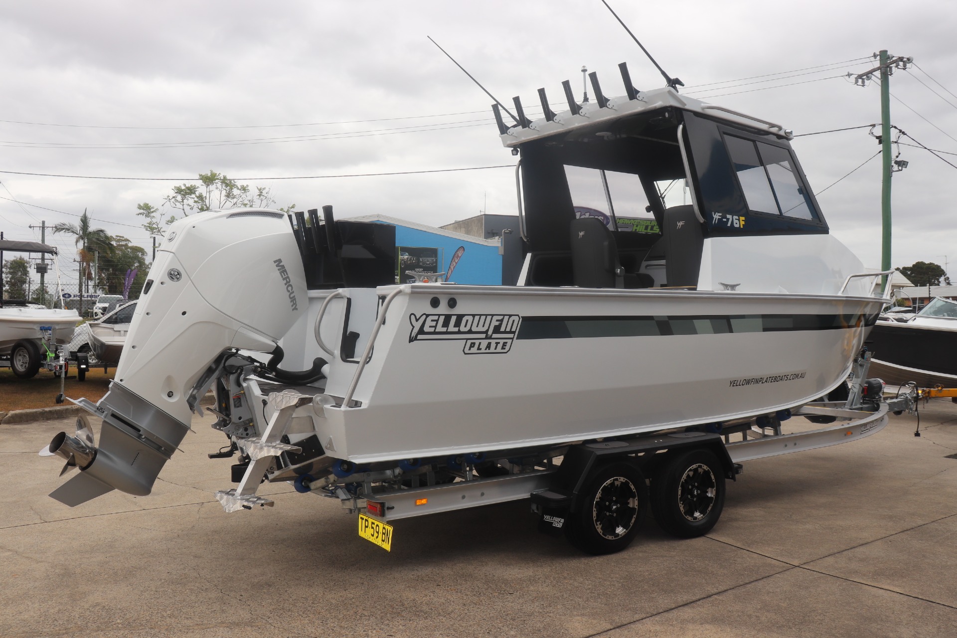 EX-DEMO YELLOWFIN YF-76F EXTENDED CABIN POWERED BY A MERCURY 300HP DTS 4 STROKE ON A YELLOWFIN TANDEM ALLOY TRAILER BOAT WILL BE AVAILABLE FOR SALE 28.1.26 PLEASE READ... is a Highly Reputable NSW Yellowfin Plate Specialist dealership. All our Yellowfin Boats are CORRECTLY advertised showing Standard specifications and detailing the factory fitted options that have been installed to assure you are buying the right Boat. The photos we display in our ads are of the exact boat advertised, powered by the best suggested Horsepower engine assuring you are buying the Perfect boat from a reputable Dealership at a fair price. ALL STANDARD FEATURES: U-Dek Trim 12v Outlet Automatic Bilge Pump Carpet: Cabin Storage & Lids Carpet: Roof Cutting Board Transom Live Bait Tank Marine Radio Outrigger Mounting Plates Push Button Switch Panel Rod Holders (6) Stainless Steel Cup Holders X 4 Trim Tabs (Zipwake) Twin Battery Box & Switch Windscreen Wiper Checker plate Floor Self-Drain Floor Anchorwell Cabin Footrest Heavy Duty Cleats (5) Rod Holders (6) Reel Easy Bowroller Side Pockets Transducer Brackets x 2 Rails: Bowrails Rails: Cabin Grabrail Rails: Dash Grabrail Rails: Hard Top Rails: Internal Cabin Grabrail Rails: Transom Cabin Hatch Sliding Cabin Windows Windscreen Seats: Extreme Seats: Small Helm Seat Box with Hatch Seats: Small Nav. Seat Box GT54UHD - Transom Mount Transducer Hydraulic Steering Transom Door Seats: Cabin Backrest ADDITIONAL FACTORY FEATURES INCLUDE: Fishing Edition: - Phone Charger - Deck Wash - Dual Windscreen Wiper - Fishing Edition Steering Wheel - Fishing Pack Dash Trim - Fishing Pack Floor Trim - Exploding Fish Rod Holders - Garmin VHF 215i Marine Radio - Suspension Seat Bases - White & Blue Underwater Light - Deluxe Fishing Baitboard - Split Lid Cooler 75Ltr - Super Bag 150 - Roller Door - Combing Cushions - Offshore Plastimo Compass Cabin Carpeted Lining Battery Tray Airmar 1KW Transducer Cabin Electric Toilet Thruster Bow Mount Plate Garmin 16" Sounder + East Coast Map Card Hand Wash LED Light Kit Mercury Vessel View 403" Engine Display Deluxe Baitboard Upgrade Hard Top Radar Bracket Cabin Infill & Cushion Transom Longe & Backrest TR MARINE ADITIONAL FEATURES INCLUDE: 12 Months NSW Boat & Trailer Registrations Paddle, Bucket, Horn & Torch Rear Tie Down Straps Fire Extinguisher *We have a well-stocked undercover Showroom and are open 6 days a week. *Need Finance? We're here to help get you on the water sooner with Mercury Marine Finance *Give us a call today to speak with one of our friendly team members 6 Year Mercury Factory Engine Warranty*