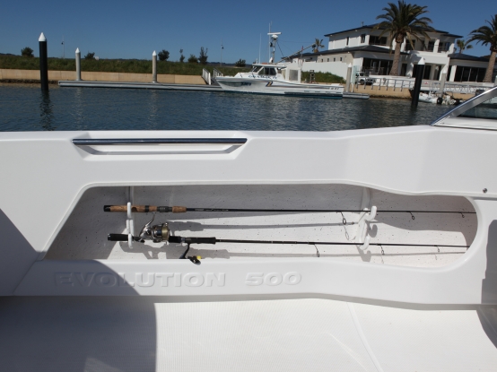 The Evolution 500 Sportsfisher boasts a proven performance pedigree and is laden with quality features. This Sportsfisher is hard to overlook as an entry-level family fishing boat. Every centimeter of the 5.00m (5.30m LOA) hand-laid fibreglass hull is thoughtfully laid out to provide a functional fishing platform that easily transforms into a sports runabout when the fish aren't biting.