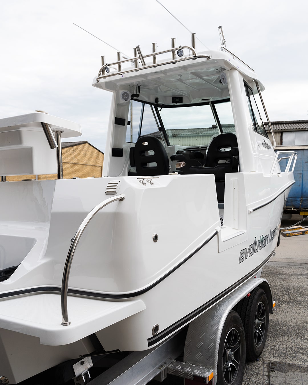 Designed by hardcore anglers for serious offshore fishing expeditions, the Evolution 652 Apex Tournament measures 7.20m LOA with a 2.49m beam and a 21° deadrise, which – combined with wide reverse chines – results in an extremely smooth ride while underway and rock-solid stability at rest.