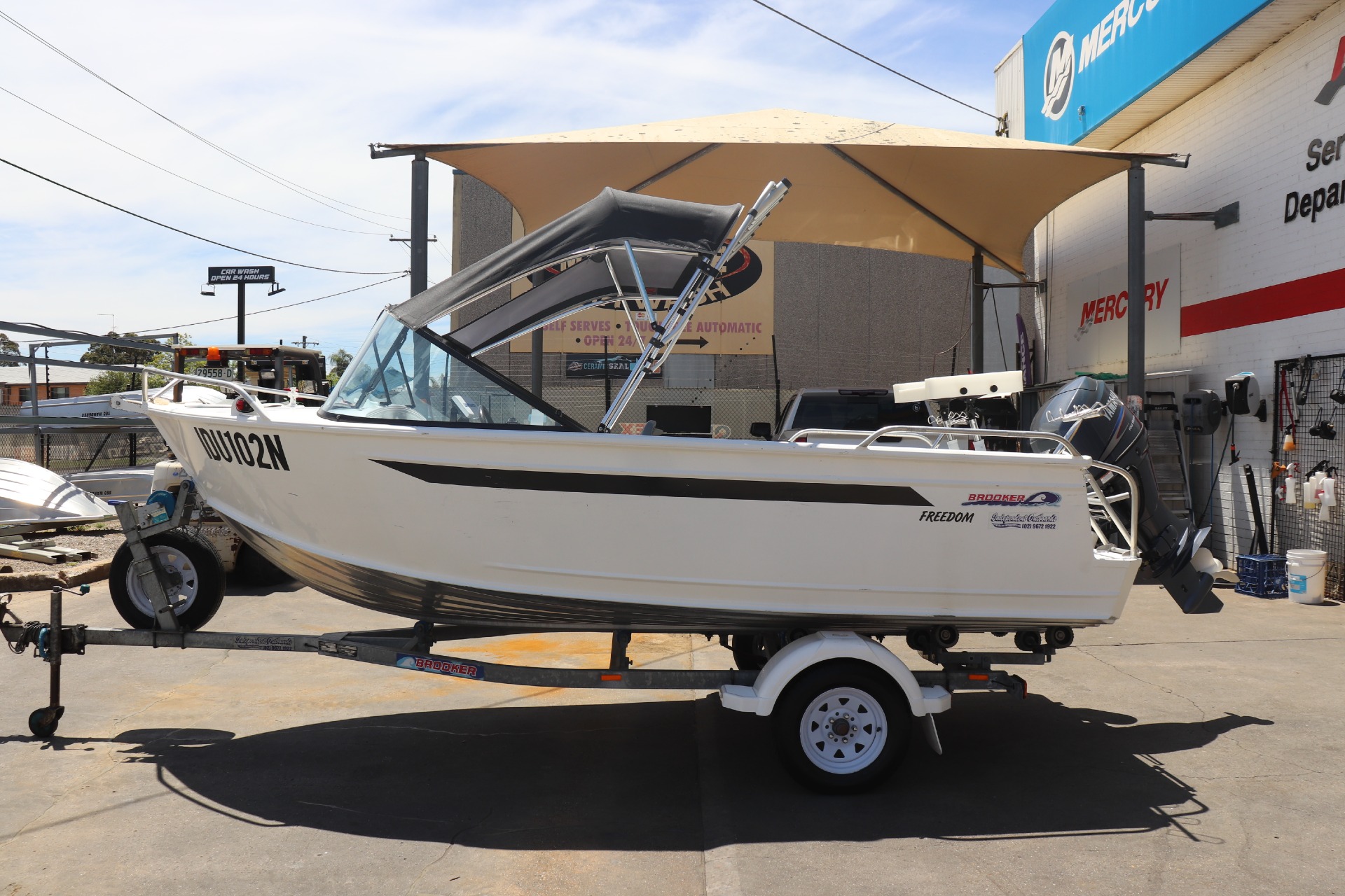 2009 Brooker 475 Freedom Powered by a Yamaha 60HP 4 Stroke on a Brooker Galvanised Trailer ONLY 175 ENGINE HOURS BOAT REGO UNTIL 18.6.26 TRAILER REGO UNTIL 11.11.26 Features Include: Navigation Lights Spare Wheel Bimini W/ Rocket Launcher Lowrance Sounder Glove Box Baitboard 2 x Rod Holders VHF Radio Compass Battery Isolation Switch 2 x Swivel Seats Rear Bench Seat Cushion W/Storage Burley Bucket *We have a well-stocked undercover Showroom and are open 6 days a week. *Need Finance? We're here to help get you on the water sooner with Mercury Marine Finance *Give us a call today to speak with one of our friendly team members