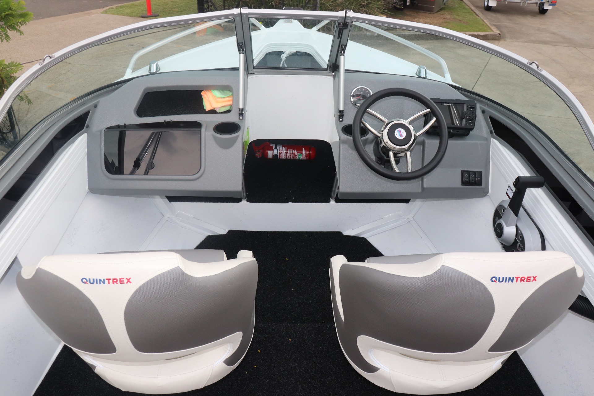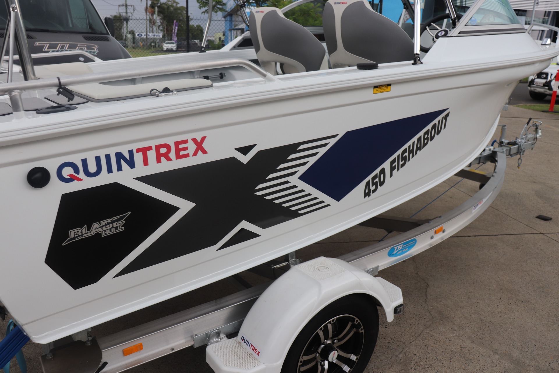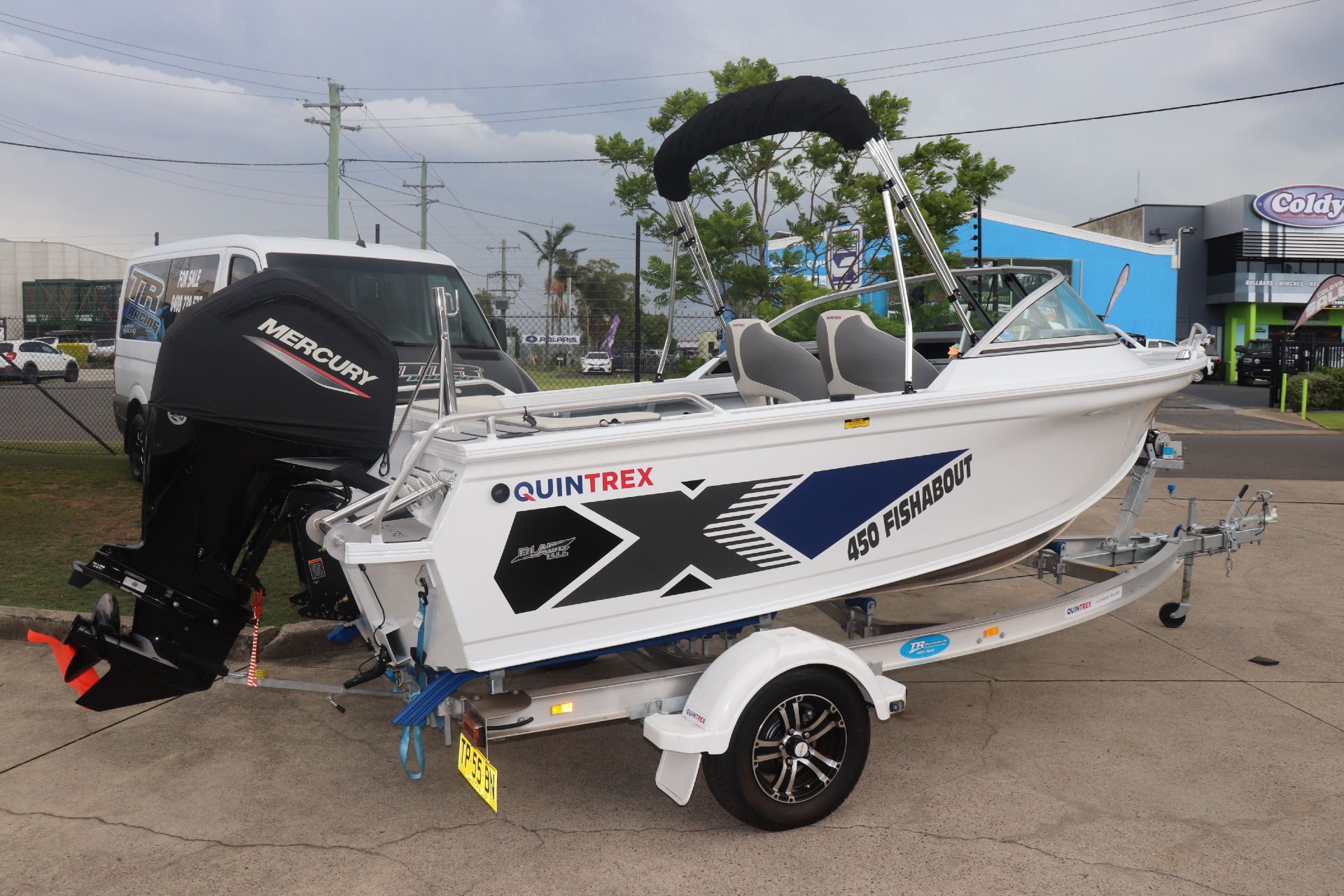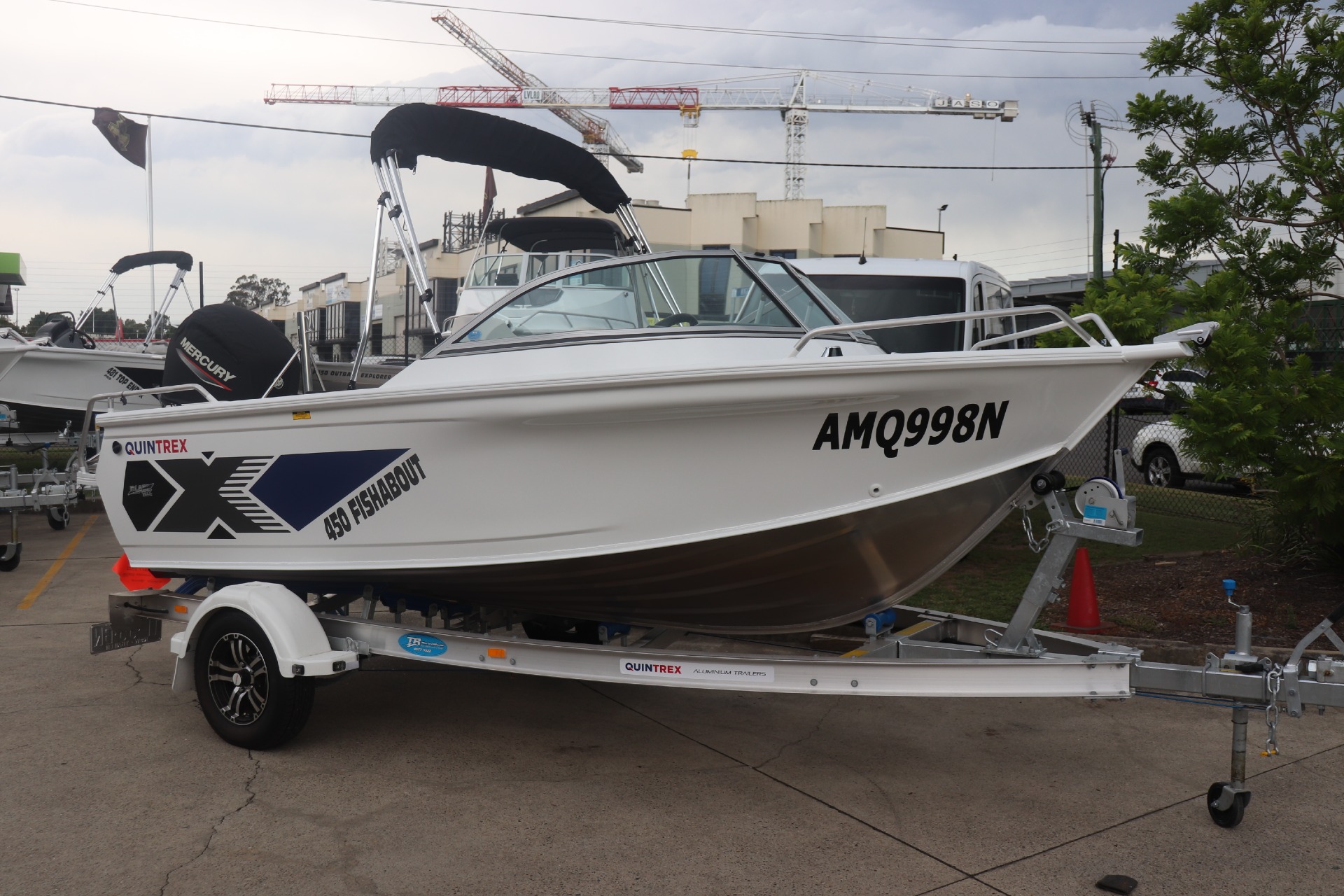 USED 2026 450 FISHABOUT POWERED BY A MERCURY 75HP 4 STROKE ON A QUINTREX ALLOY TRAILER FRESHLY SERVICED ***7.4 ENGINE HOURS*** FEATURES INCLUDE: ALL STANDARD FEATURES+ Comfort Pack - Bimini & Envelope - Deluxe rear Lounge & Backrest - Upgraded Maritime Sports Seats Cargo/Luggage Netting Garmin 5" Sounder Upgraded Steering Wheel Ski Hooks S.S Ski Pole QTX Boat Storage Cover *We have a well-stocked undercover Showroom and are open 6 days a week. *Need Finance? We're here to help get you on the water sooner with Mercury Marine Finance *Give us a call today to speak with one of our friendly team members