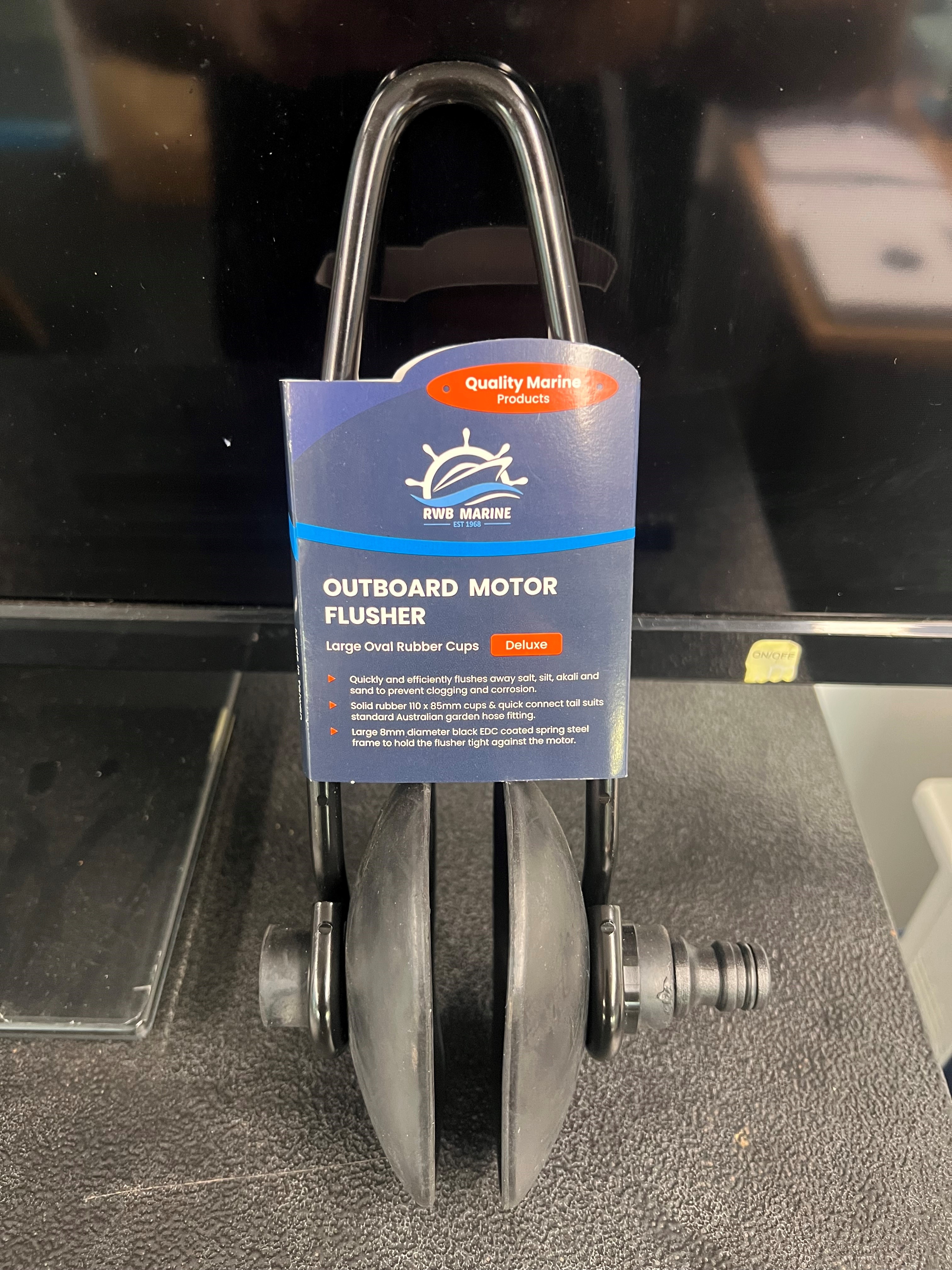 RWB OUTBOARD MOTOR FLUSHER WITH DELUXE LARGE OVAL RUBBER CUPS